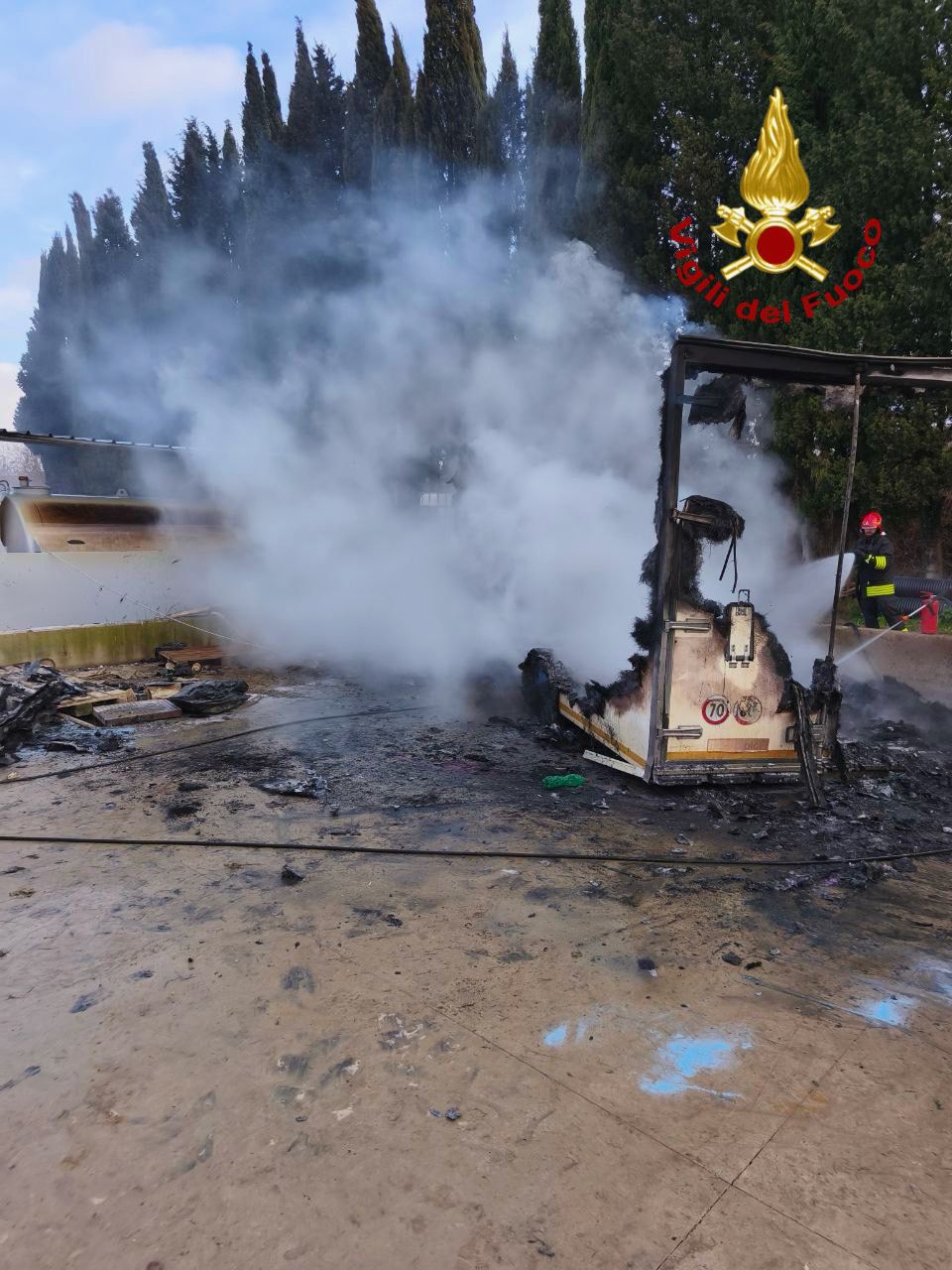 Incendio a Pantalla. I vigili del fuoco sono intervenuti questa mattina - venerdì 9 gennaio - all'interno di un'azienda dove un rimorchio cassonato ha preso fuoco. Sul posto hanno operato una squadra del distaccamento di Todi e una della sede centrale di Perugia. L'incendio è stato estinto senza ulteriori conseguenze.