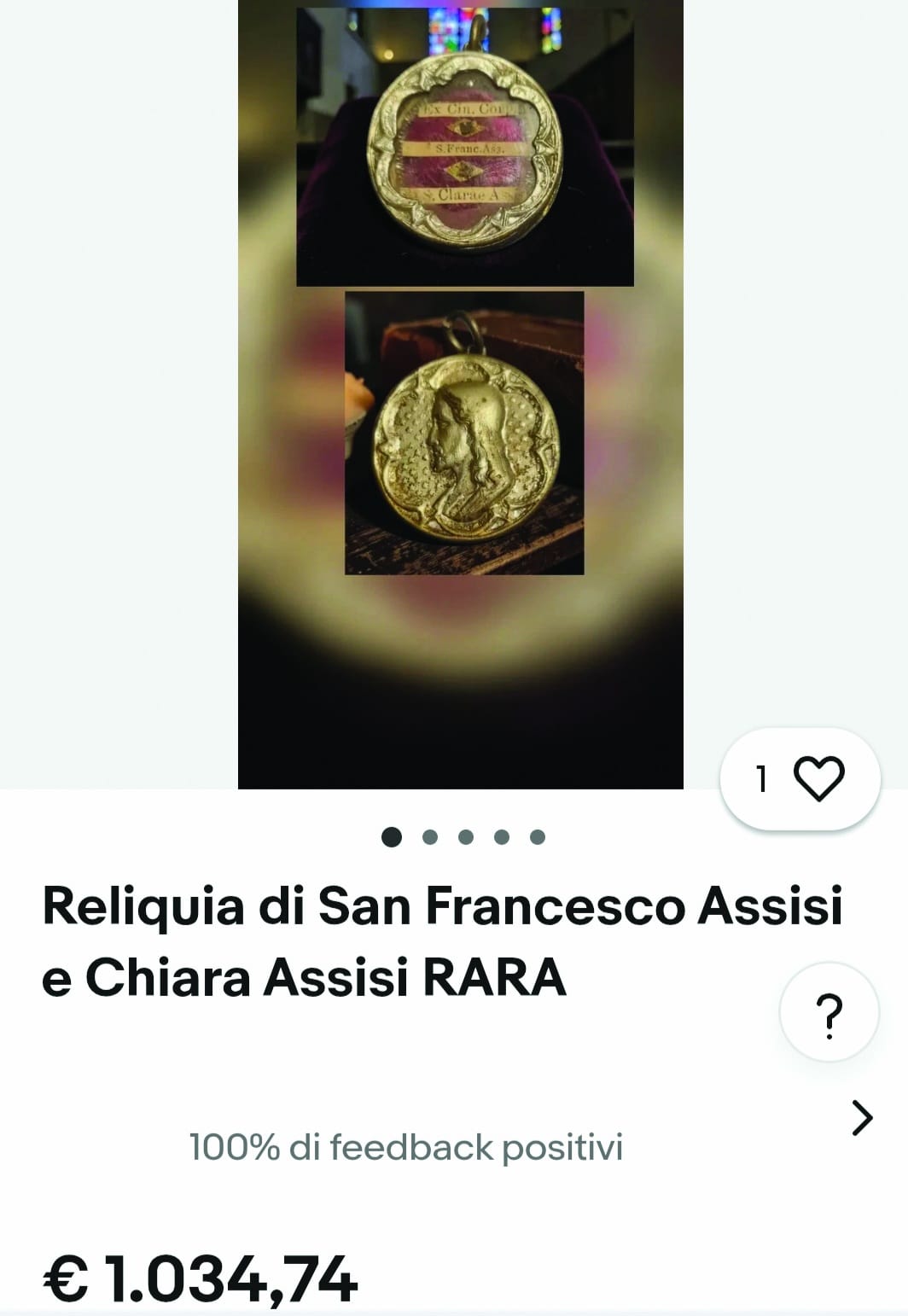 In questo caso non c’è alcun riferimento alla documentazione che la renderebbe autentica, ma si parla di sigillo ecclesiastico, così come se ne parla in un’altra inserzione con una reliquia in vendita a 750 euro. Tutti annunci che sollevano ben più di qualche dubbio. In tema di reliquie, dopo l’ultima puntata dell’inchiesta del Corriere dell’Umbria, il custode del Sacro Convento di Assisi, Fra Marco Moroni, aveva dichiarato: “La vendita delle reliquie è assurda, e il fatto che esista un mercato online con prezzi anche altissimi è una deriva che la Chiesa rifiuta. Le reliquie non sono in vendita”.