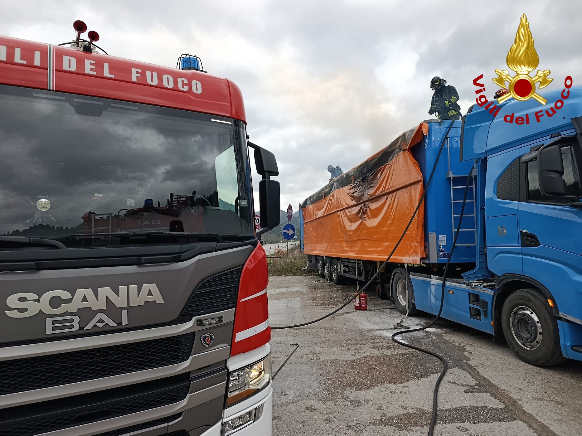 La squadra dei vigili del fuoco di Terni è intervenuta nel pomeriggio di oggi – giovedì 2 aprile – per domare l'incendio che ha interessato il rimorchio di un camion che trasportava rifiuti lungo la Flaminia tra Terni e Spoleto. Il tir si era fermato poco prima la frazione di Testaccio, in un parcheggio di un noto ristorante della zona. Mentre i vigili del fuoco del distaccamento di Spoleto erano impegnati in un altro intervento, la squadra della centrale di Terni è arrivata sul posto con una APS (Autopompa serbatoio) e un'autobotte.