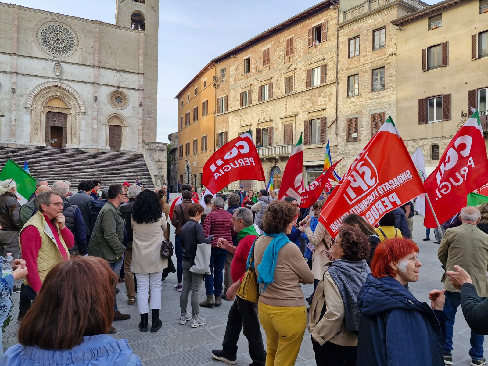 Alla manifestazione sono intervenuti, tra gli altri, il senatore Walter Verini, l’onorevole Emma Pavanelli, il consigliere regionale Fabrizio Ricci, i consiglieri comunali Fabio Catterini e Andrea Caprini, Giorgio Squilloni di Potere al Popolo, Mario Bolli per l’Umbria per la pace, la Spi Cgil, il coordinamento Donne Spi Cgil, l’associazione Franca Viola coordinamento Donne Todi e Unione delle donne in Italia Perugia.