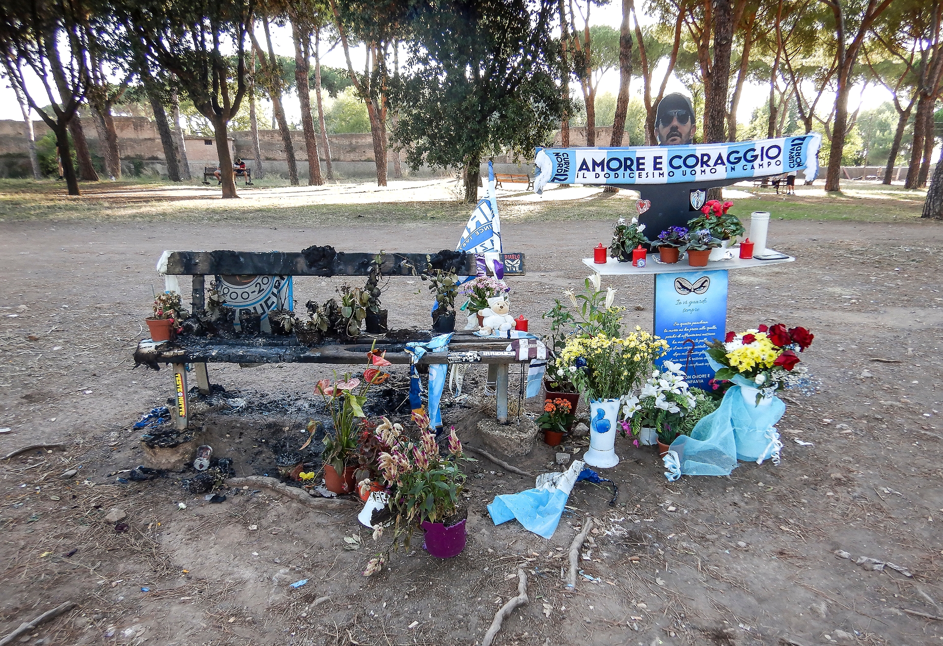 Diabolik, bruciata nella notte la panchina dove è stato ucciso Piscitelli