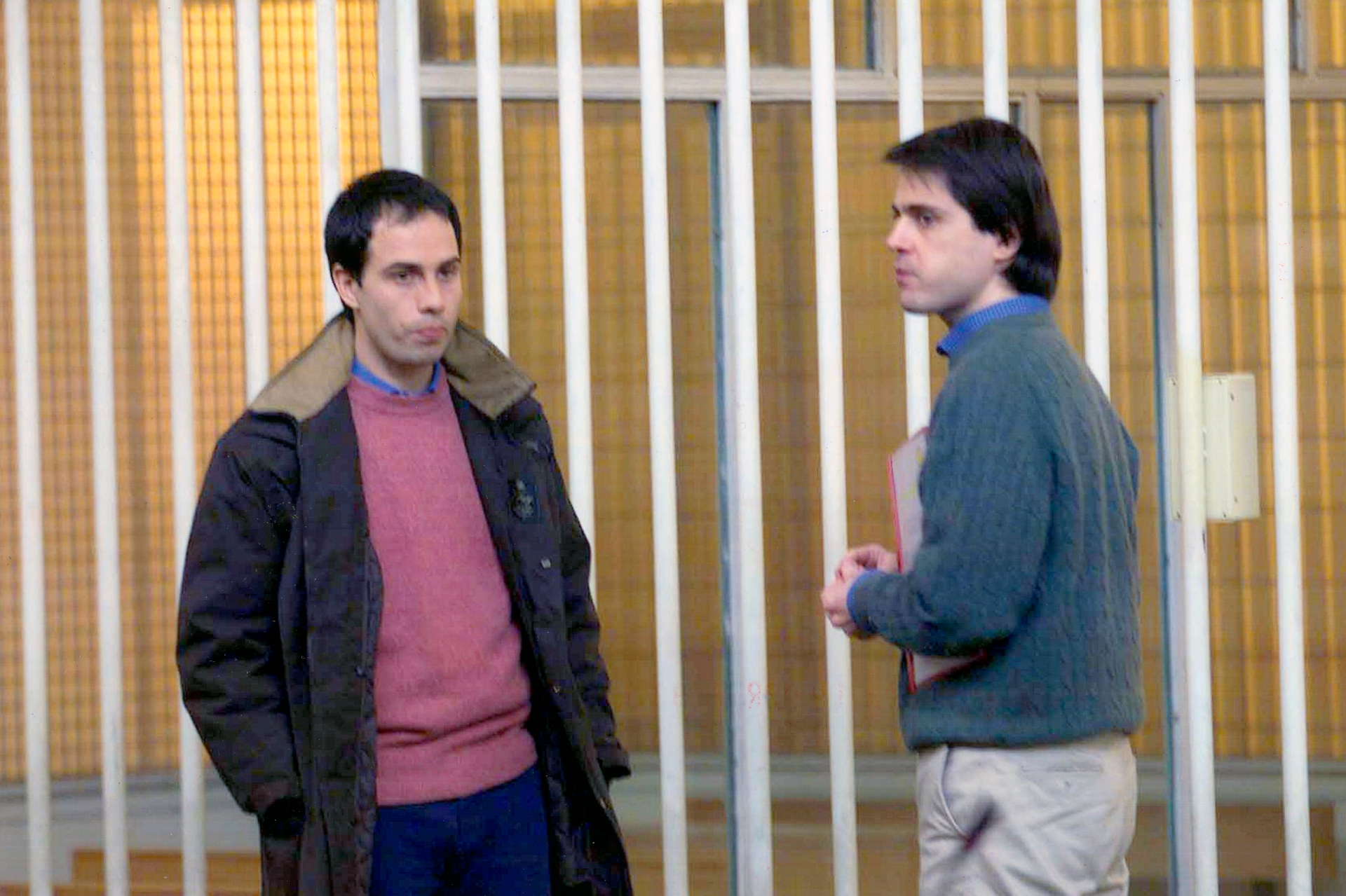 Salvatore Ferraro e Giovanni Scattone fotografati alla fine dell'udienza nel 1999