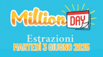 Nuova estrazione per Lotto e Superenalotto oggi, martedì 3 giugno. Il montepremi per questa estrazione è salito a 8,4 milioni di euro dopo che sabato 31 maggio non è stato centrato nessun 6. È stato centrato un 5+1 da 553.085,21 euro, realizzato a Nova Milanese (MB). Centrati sedici 5 da 11.168,07 euro. Complessivamente sono stati assegnati 750.152 premi, per un totale di 5.537.522 euro vinti, includendo le quote del SuperStar e dei premi WinBox.
