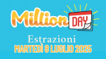 Nuova estrazione per Lotto e Superenalotto oggi, martedì 8 luglio. Il montepremi per questa estrazione è salito a 22,9 milioni di euro dopo che sabato 5 luglio non è stato messo a segno nessun 6. Centrati cinque 5 da 35.315,39 euro l'uno. Complessivamente sono stati assegnati 556.323 premi, per un totale di 3.764.929 euro vinti, includendo le quote del SuperStar e dei premi WinBox.