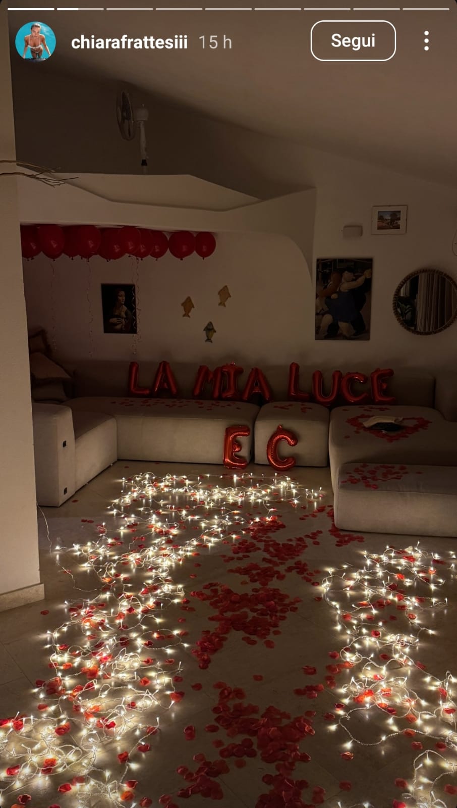 Petali di rose rosse, luci soffuse e palloncini che formano la scritta "Sei la mia luce". Tutto preparato a tavolino per sorprendere la fidanzata Chiara, con cui il rapper è legato dalla scorsa estate. L'atmosfera romantica e l'effetto sorpresa hanno regalato un dolce ricordo al compleanno della giovane influencer che oggi, lunedì 11 agosto, taglia il traguardo dei 23 anni.