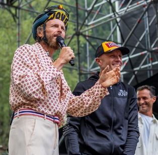 Finito il tour Jovanotti ha deciso di riprendere la bici. E fare il concerto per appassionati delle biciclette solo dopo aver percorso i 770 chilometri con la bici da strada. Ha voluto vincere la sfida completando il percorso di rinascita. Al suo fianco ha voluto nuovamente Fred, come professionista della fisioterapia ma anche come amico e gregario. Da Cortona ai laghi di Fusine.