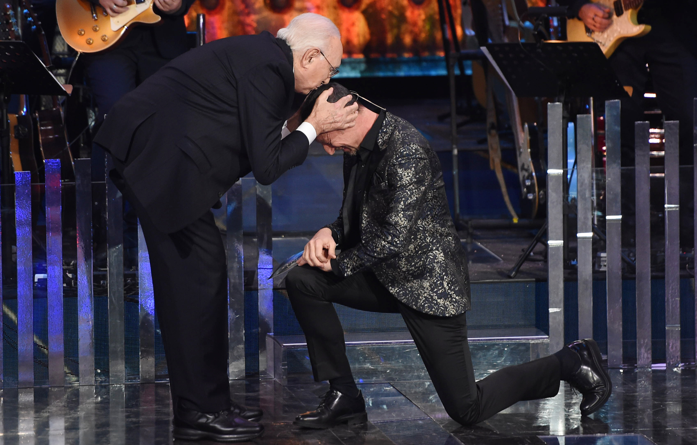 Pippo Baudo insieme ad Amadeus a Sanremo Giovani 2019