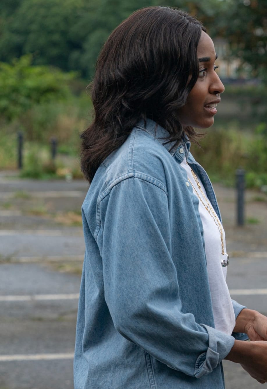 Blu scuri, grigi tetri e i marroni profondi rispecchiano quella "gray area" di dubbi e accuse. Eppure, l'evoluzione di Maggie è palese. Nel climax, indossa un blazer per intimidire il suo aggressore, mentre nella scena finale opta per un outfit vibrante e stampato di Wales Bonner, rompendo con l'imitazione. "Ha fatto pace con se stessa, non cerca più di essere Alma: dovevo renderlo davvero diverso dal resto del film", dice la costumista.