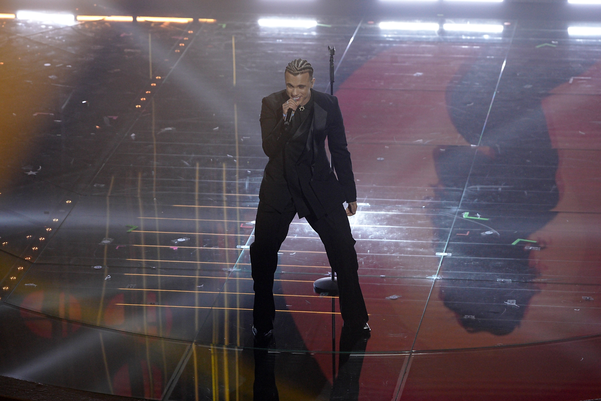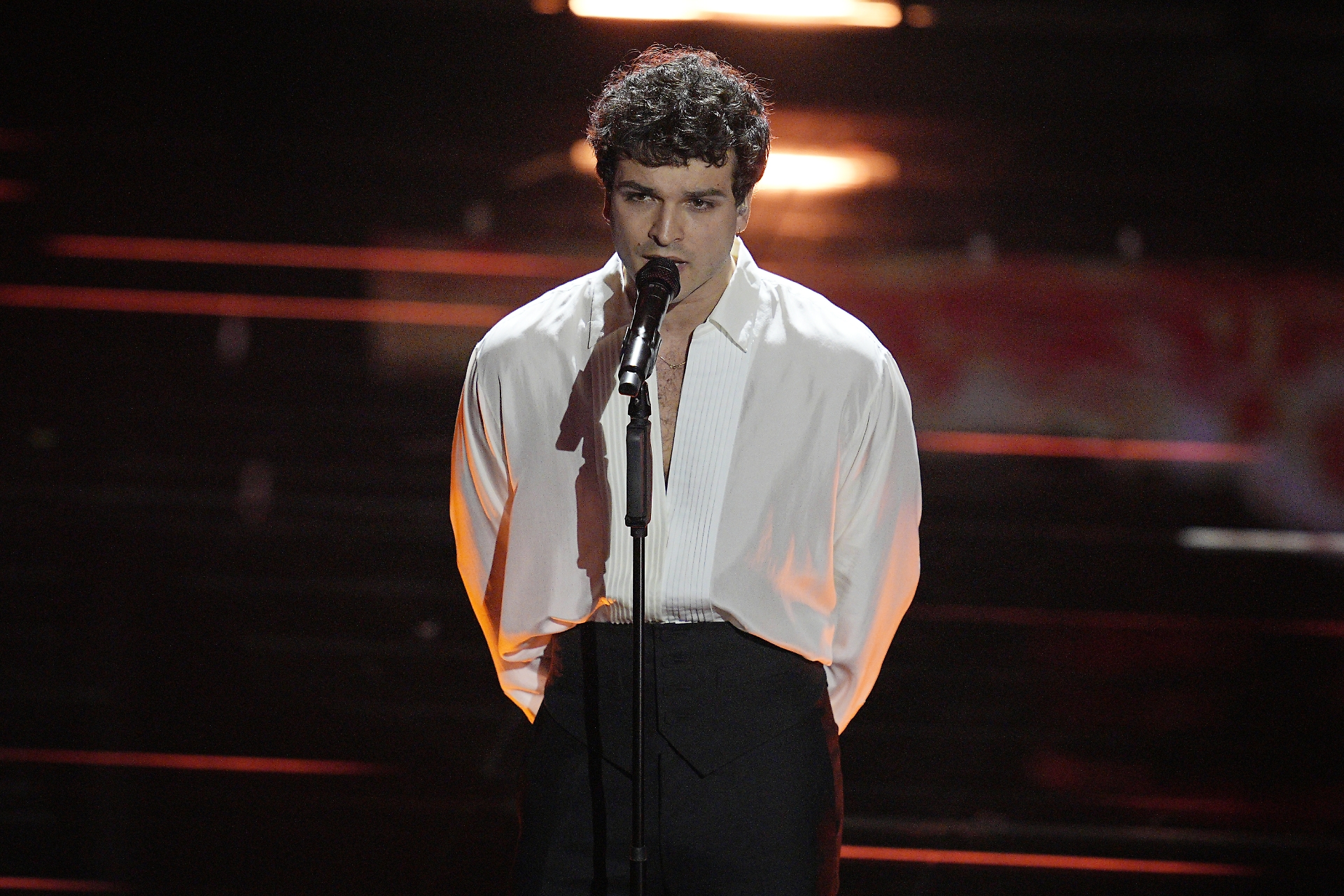 Entra elegantissimo sulle note della stupenda Il diario degli errori. Questa canzone, però, non si avvicina per nulla alle vette toccate dalla struggente ballata intimista presentata nel 2017.