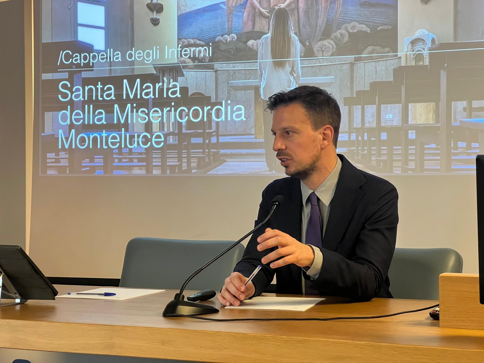 L’incontro, promosso da Regione Umbria e da Aiop Umbria (Associazione Italiana Aziende Sanitarie e Socio-Sanitarie di Diritto Privato), ha coinvolto rappresentanti delle imprese della sanità privata e privata convenzionata del territorio chiamate a sostenere l’intervento attraverso lo strumento dell’Art Bonus, con l’obiettivo di attivare una rete di sostegno e contribuire al recupero di un’opera di grande valore artistico e simbolico per la città di Perugia e per la storia della sanità umbra. Attraverso l’intervento nella Cappella di Monteluce la Regione Umbria, per la prima volta, utilizza questa opportunità di finanziamento che rappresenta una delle novità introdotte nel Testo Unico della Cultura e dell'impresa creativa approvato nei giorni scorsi dalla Giunta regionale.
