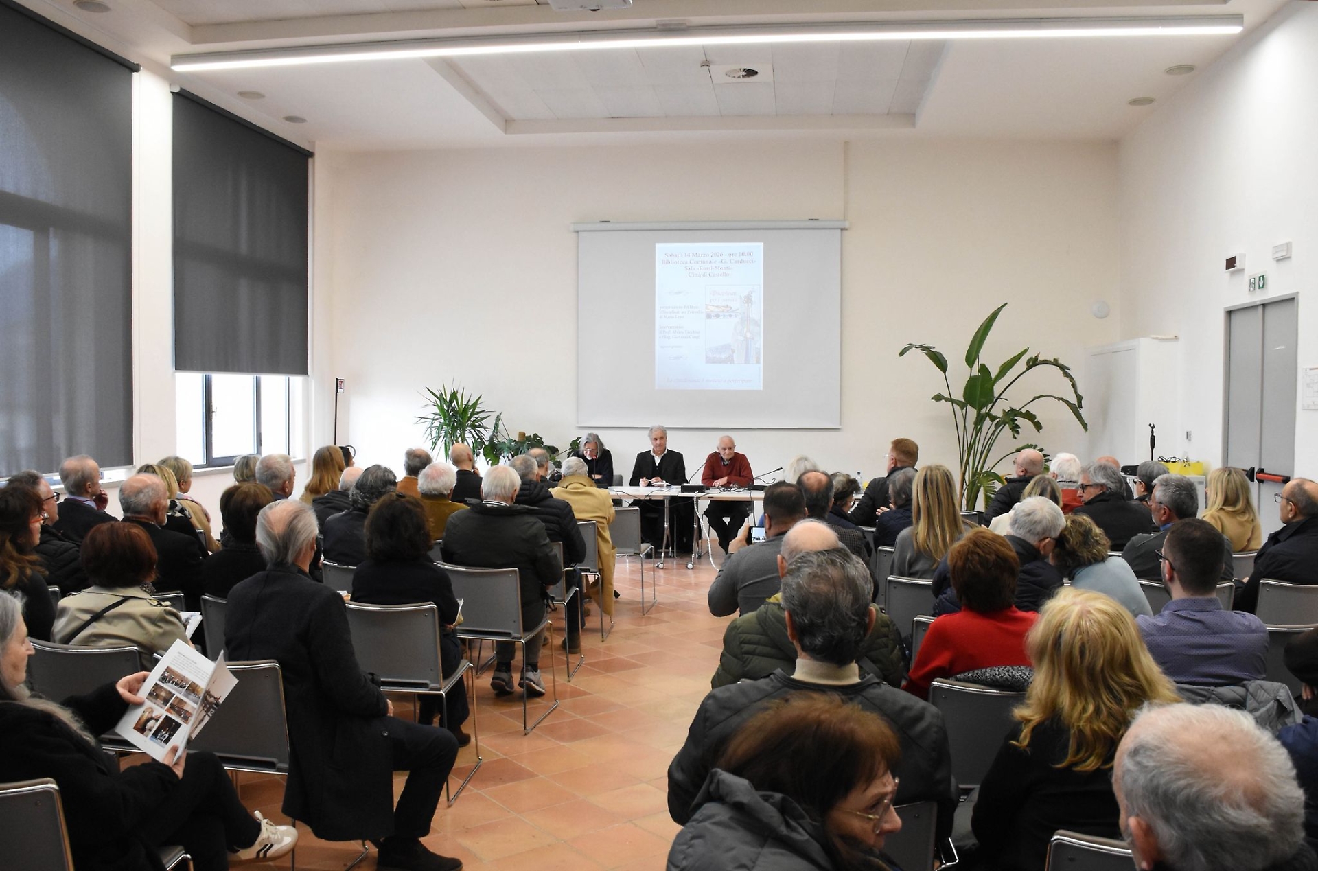 Accanto all’autore erano presenti il professor Alvaro Tacchini e l’ingegner Giovanni Cangi, oltre a rappresentanti delle istituzioni cittadine: il sindaco Luca Secondi, gli assessori Michela Botteghi e Benedetta Calagreti e il presidente del consiglio comunale Luciano Bacchetta.