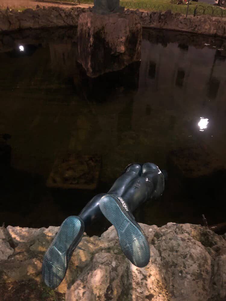 Le prime persone che l'hanno vista, questa mattina, sono rimaste stupite. Perché fino a ieri, tutti erano certi che in una delle due fontane di piazza Italia, a Perugia, quella statua non c'era. L'installazione, dal titolo "All'amore non si resiste" (titolo anche di una famosa poesia di Alda Merini), è infatti comparsa nella notte tra lunedì e martedì a firma Hxoro, artista marchigiano. Si tratta di un'opera d'arte moderna, come se una persona si fosse appena buttata in acqua: dalla superficie escono solamente il bacino, le gambe e i piedi.