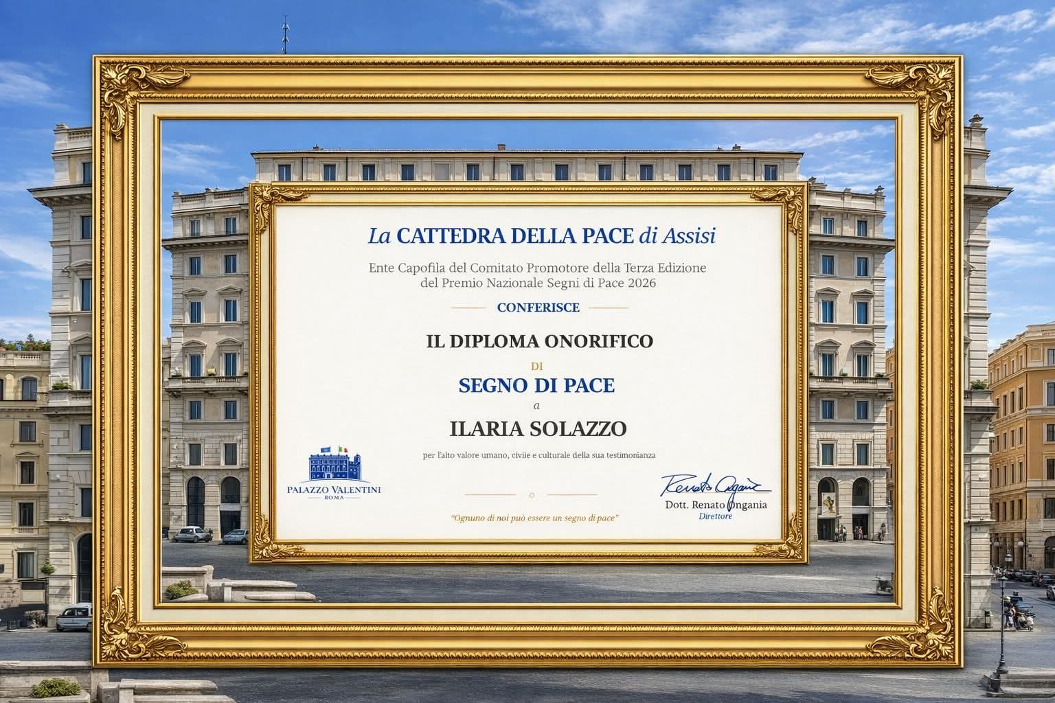 Il suo impegno è stato riconosciuto anche a livello nazionale: il 15 aprile 2026, a Roma, ha ricevuto il prestigioso premio Segni di Pace, conferitole grazie alla stima della dottoressa Antonietta Micali, che ne ha sottolineato la signorilità e l’onestà.