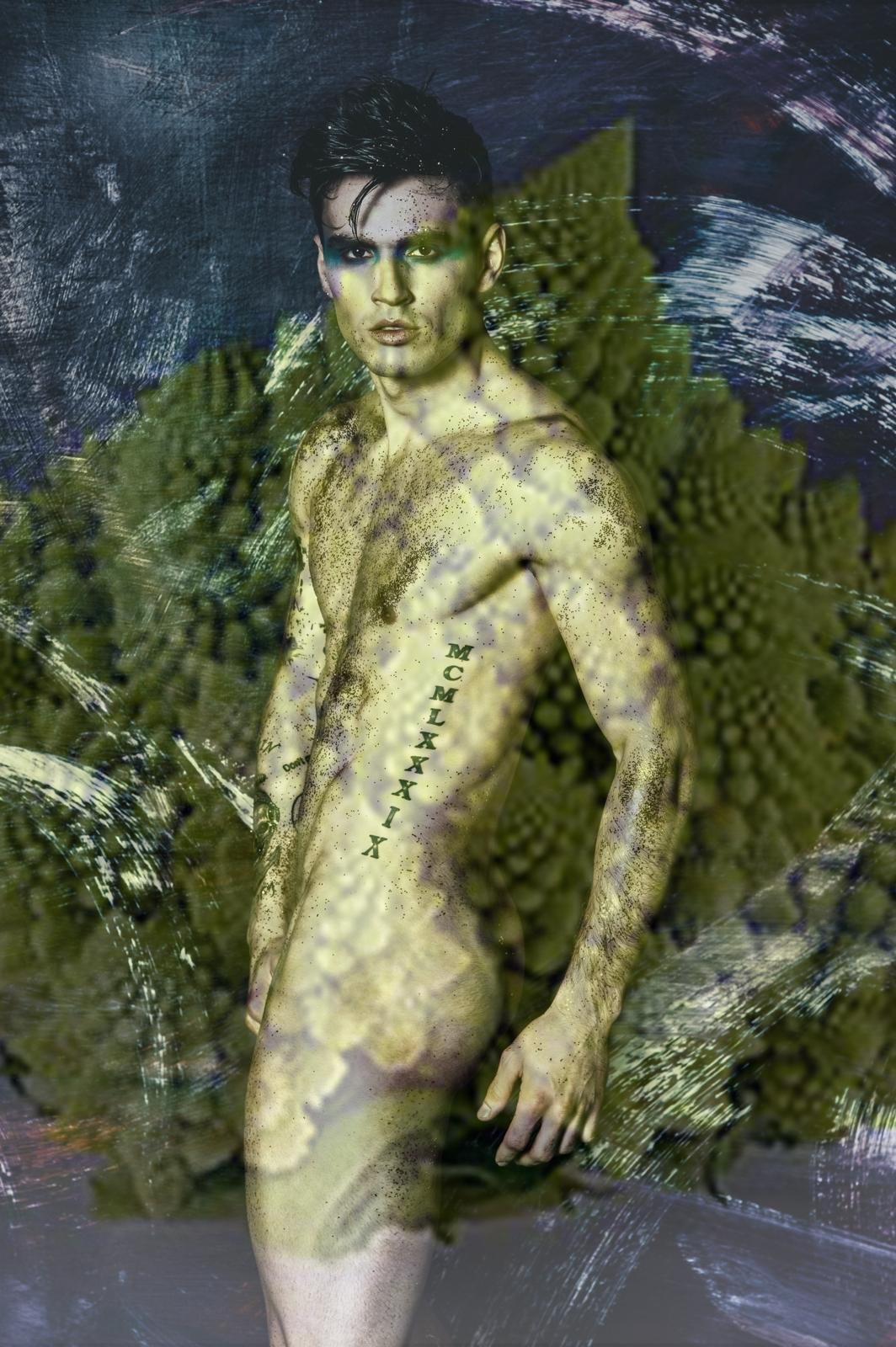 Protagoniste della mostra romana, due opere fotografiche, figlie di una particolare lavorazione artistica, nelle quali la fotografa ha rappresentato due soggetti maschili, due modelli catturati dal suo obiettivo. Due opere potenti ma anche dirompenti a partire proprio dalla scelta delle figure riproposte sui pannelli di plexiglass: il ritratto, infatti, è quello di due uomini, su cui l’artista ha puntato la macchina fotografica, rompendo, per così dire, con la tradizione, quella di portare sulla scena artistica principalmente figure femminili. Soprattutto quando rappresentate senza veli. Ecco che allora “Echecavolo”, uno dei due capolavori, catalizza lo sguardo dello spettatore su un nudo maschile, quello del modello italo-abanese Wilson Korra, la cui immagine incontra sul plexiglass quella del cavolo romano, nella sua forma piramidale che si fa sintesi di perfezione. Perfezione cui fa da contraltare l’opera “Sacro core”, che ha invece come soggetto lo stile rock del fotomodello e chitarrista Daniele Provenda. In questo caso il mezzobusto del soggetto, rappresentato in primo piano, si incontra con un cuore, il sacro cuore appunto, trafitto da una spada all’altezza della spalla.