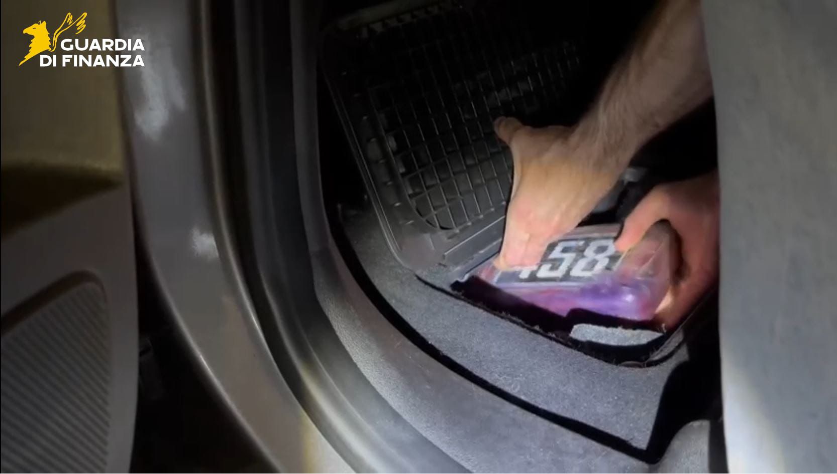 L'ispezione dell'auto, bloccata nei pressi di un’area di servizio a Foligno, ha permesso di individuare due doppi fondi artigianali, abilmente realizzati sotto i sedili posteriori del mezzo "accessibili solo tramite un sofisticato sistema di apertura meccanico, appositamente occultato per sfuggire a eventuali controlli". Al loro interno, i militari hanno rinvenuto 10 panetti di cocaina per un peso complessivo di circa 12 chilogrammi, oltre a 10 mila euro in contanti "verosimilmente provento dell’attività di traffico e spaccio di sostanze stupefacenti".