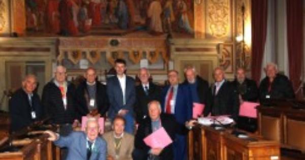 Alle ore 12 il gruppo è stato ricevuto nella sala consiliare del palazzo comunale dal presidente del consiglio comunale Giuseppe Galligari su delega del sindaco Stefano Zuccarini. L’avvocato Galligari ha consegnato a tutti, facendo l’appello, il diploma di platino su carta pergamena, mentre gli studenti hanno consegnato il diploma alla memoria del preside al figlio Luigi Andreani. Al termine tutti a pranzo presso un noto ristorante nelle vicinanze.
