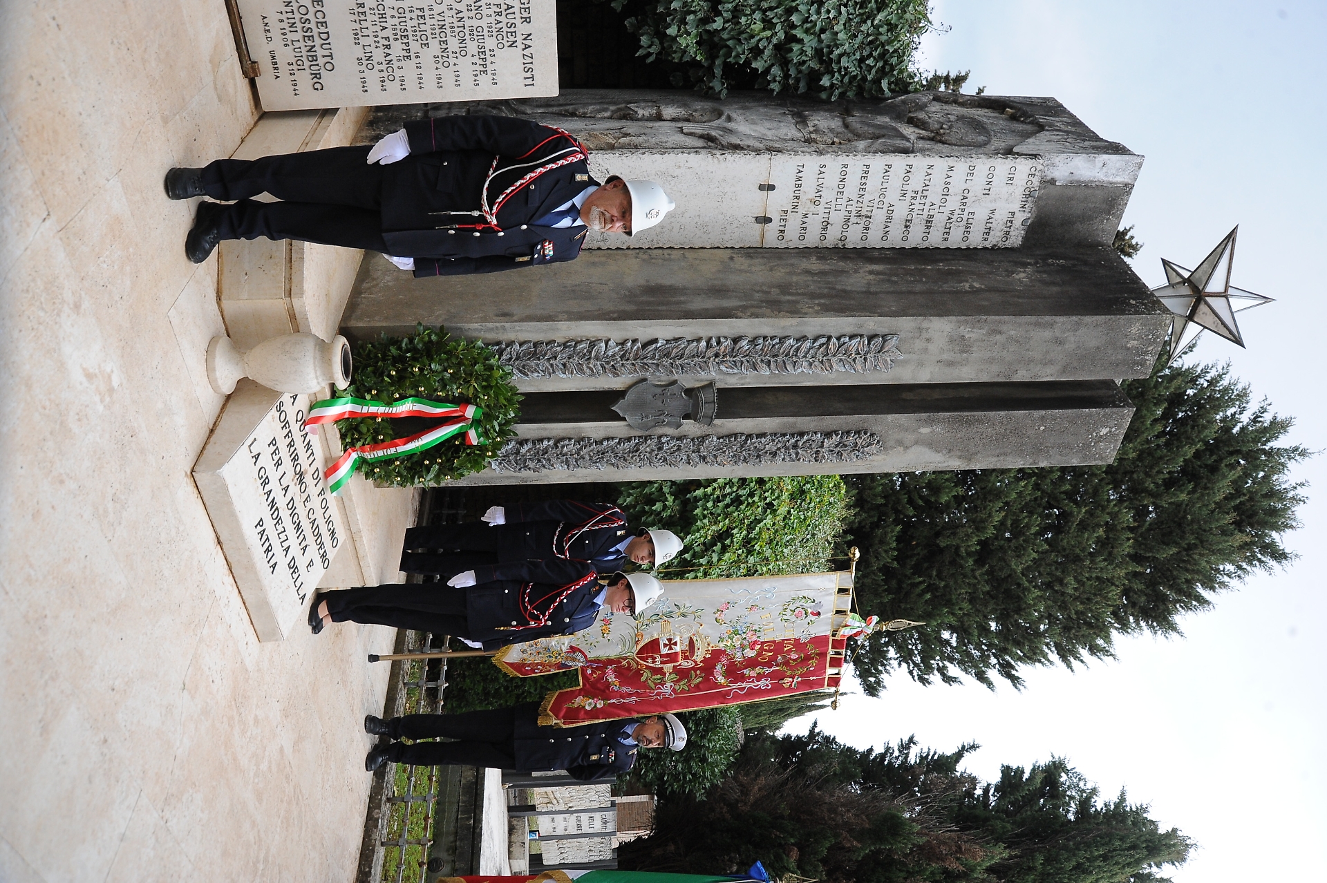 La commemorazione, solenne e partecipata, si è articolata in due momenti simbolici. Il primo appuntamento ha avuto luogo in via III Febbraio, presso la rotatoria del cimitero centrale, dove è stata deposta una corona di alloro ai piedi della stele dedicata ai deportati. Successivamente, il corteo si è spostato all'interno del cimitero di Santa Maria in Campis: qui, presso il sacrario, un'altra corona è stata posta davanti alla lapide che porta incisi nel marmo i nomi di quei padri, figli e fratelli che non fecero mai ritorno. Solo 3 di loro riuscirono a sopravvivere all'inferno dei lager. I restanti trovarono la morte a causa delle privazioni e delle violenze naziste.