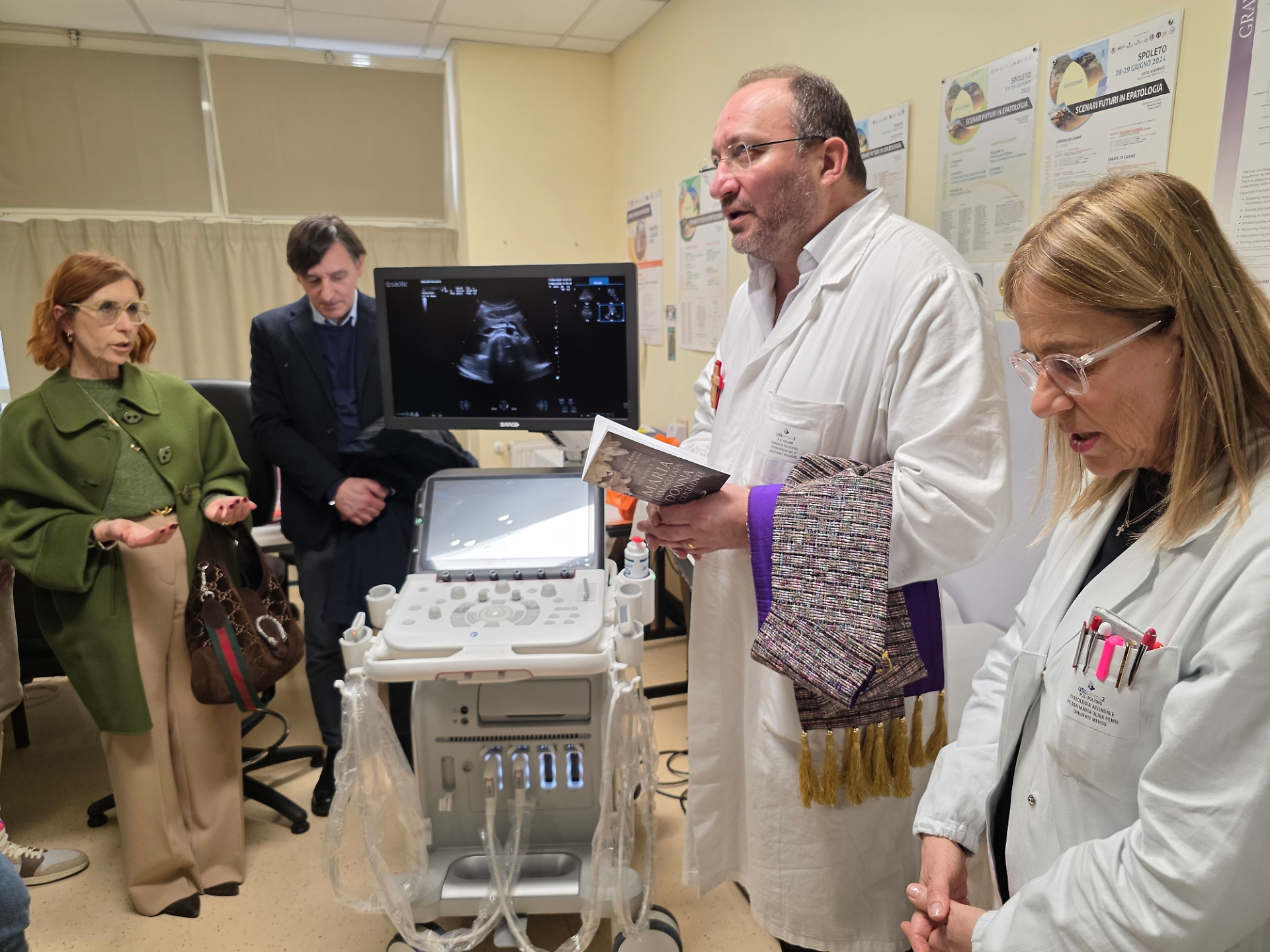 Tra pareti strette e camici bianchi assiepati nell’ambulatorio di epatologia al piano terra dell’ospedale, ieri mattina si è respirata l’aria delle occasioni che contano. In uno spazio angusto ma carico di attesa è stato inaugurato il nuovo ecografo di ultima generazione donato dalla Fondazione Cassa di Risparmio di Foligno: una tecnologia destinata a rafforzare diagnosi e cure per un territorio vasto e popoloso. Ad accogliere la presidente della Fondazione, Monica Sassi, c’era il cuore operativo dell’ospedale: il direttore sanitario Alfredo Notargiacomo, la direttrice del presidio ospedaliero, Orietta Rossi, la responsabile della struttura semplice dipartimentale di Epatologia Maria Oliva Pensi, numerosi primari e specialisti.