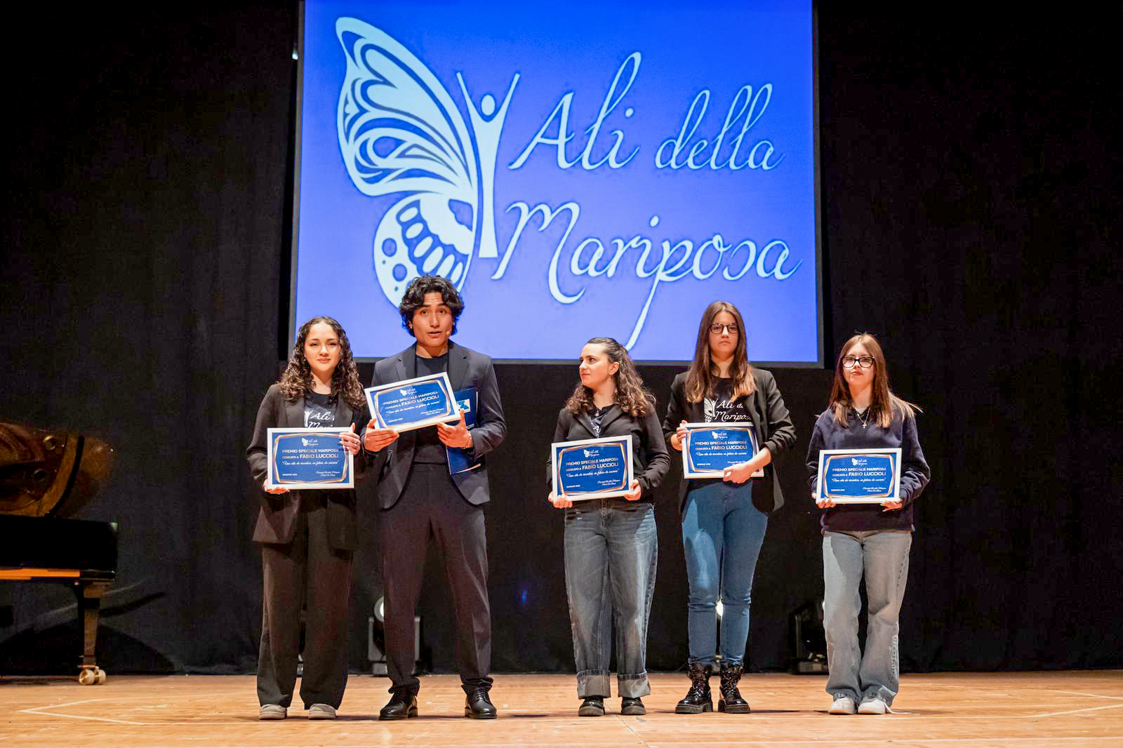 Sei borse di studio, grazie al sostegno di aziende cittadine, conferite a ragazzi che hanno raggiunto il massimo dei voti nel comportamento e nell’educazione civica, e questo “perché - ha detto la presidente - indicano il senso delle regole, la responsabilità e un profondo valore di convivenza civile”. Una scelta lodata anche dal vicesindaco Riccardo Meloni, presente all’evento. A ricevere il riconoscimento sei studenti dell’Istituto tecnico economico aeronautico “Feliciano Scarpellini”, guidato dalla preside Federica Ferretti, dove Luccioli si era diplomato e dove la mamma è stata a lungo stimata docente. Loro sono Aurora Bellocco, Chiara Cerquiglini, Caterina Donati, Mary Teresa Olivieri, Sara Papini e Brian Solorzano, il quale ieri ha condotto l’evento al fianco di Lucia Giello, vicepresidente di Ali della Mariposa.