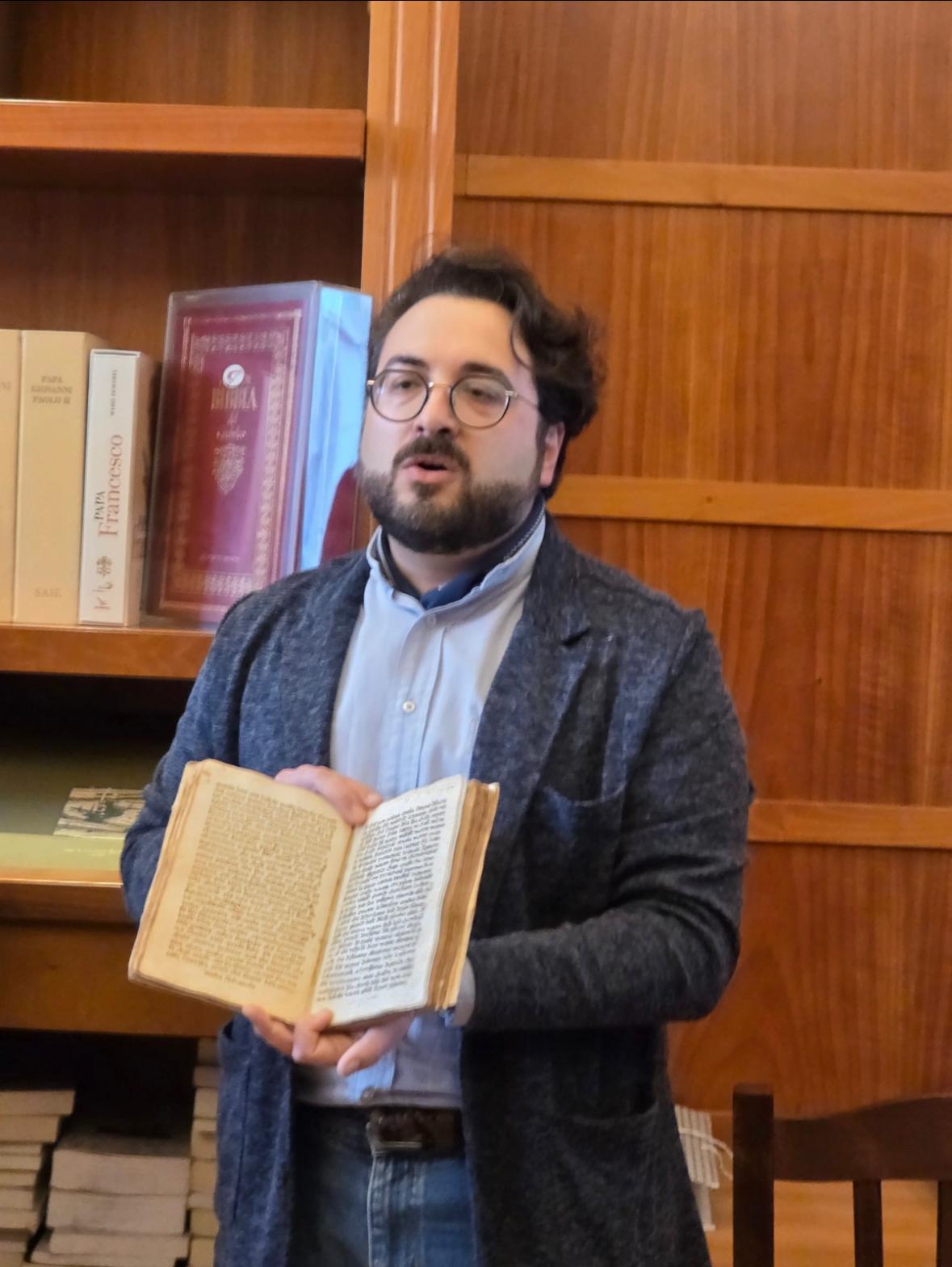 Ivan Petrini della Biblioteca Jacobilli con il manoscritto