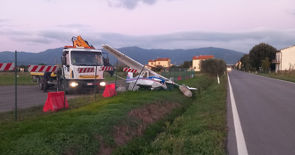 La corsa del mezzo è terminata non troppo distante dalla strada provinciale della Misericordia, trafficatissima arteria che congiunge Castiglion Fiorentino con Cesa in direzione del casello autostradale A1 di Monte San Savino. Sul posto è intervenuto il carro attrezzi per il recupero dell'ultraleggero danneggiato (foto Mario Ardenti): la cabina è rimasta integra e questo ha salvato il pilota.