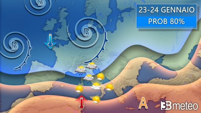 Archiviata la fase fredda caratterizzata dall'arrivo sull'Italia di correnti artiche dall'Europa orientale, si riapre la porta atlantica che consentirà alle perturbazioni oceaniche di raggiungere l'Italia e l'Europa, lo riporta Carlo Migliore di 3Bmeteo. Questo tipo di circolazione è caratterizzata da temperature miti e clima umido e a tratti piovoso, ma non ci saranno intense fasi di maltempo sull'Italia.