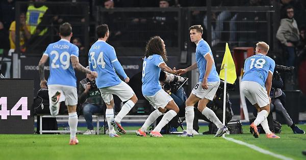 ROMA (ITALPRESS) - La Lazio ritrova i tre punti in casa battendo la Juventus per 1-0 nel match che chiude l'ottava giornata di Serie A. Nonostante le assenze, i biancocelesti fanno la partita con la mentalità e il "sacrificio" richiesti da Sarri e salgono a 11 punti, a una lunghezza dai bianconeri, che incappano nella terza sconfitta consecutiva tra campionato e coppa: nel complesso, la squadra di Tudor non vince da otto partite, da quella vinta contro l'Inter il 13 settembre. A decidere la gara dell'Olimpico è stato Basic. Tante le polemiche arbitrali nel corso del match (che seguiranno verosimilmente nel post-partita). Sarri propone titolari Isaksen e Zaccagni e, per sopperire all'assenza di Tavares, sposta Marusic a sinistra con Lazzari a destra. Nella Juventus, per la prima volta Vlahovic e David giocano insieme dal primo minuto, con Yildiz che si accomoda inizialmente in panchina a causa del leggero fastidio al ginocchio. Proprio Isaksen si mette in luce dopo pochi minuti con uno slalom speciale ma senza trovare compagni in area. Il gol biancoceleste (che sarà decisivo) arriva al 9': David sbaglia completamente la sponda per McKennie, Cataldi recupera palla e la scarica su Basic, il quale tira e batte Perin, complice la deviazione di Gatti. La risposta bianconera è affidata a Conceicao, da cui passano la maggior parte delle iniziative degli ospiti, come nell'occasione del cross per Cambiaso, il cui tiro si spegne sull'esterno della rete. Poi, Gatti mura un tiro di Guendouzi e Provedel è ottimo nell'uscita su David, autore di una prova estremamente sottotono, così come Vlahovic e Dia: una serata decisamente complicata per i centravanti di entrambe le squadre. Al rientro dagli spogliatoi, Tudor rompe gli indugi e inserisce Yildiz, che però non riuscirà a incidere. La Juve si fa vedere con una traversa di Vlahovic da pochi passi (ma c'era fuorigioco di Kelly) e un tiro innocuo di Locatelli, ma al 56' la Lazio protesta chiedendo il secondo giallo per McKennie. Passano pochi minuti e sono i bianconeri a protestare per un contatto tra Gila e Conceicao, giudicato non falloso da Colombo. Provedel si fa trovare pronto sul colpo di testa di Thuram, mentre Isaksen, autore di una grande partita, sfiora il raddoppio al 79'. Paradossalmente, nonostante il punteggio, è più la Lazio a cercare il secondo gol che non la Juve a inseguire il pareggio: anche Pedro, appena entrato, va vicinissimo alla rete mancando il bersaglio grosso di pochissimo. Il forcing finale, con tanto di colpo di testa centrale di Thuram, non basta agli ospiti, che tornano a Torino senza punti. - foto Ipa Agency - (ITALPRESS). mec/pdm/red 26-Ott-25 22:51