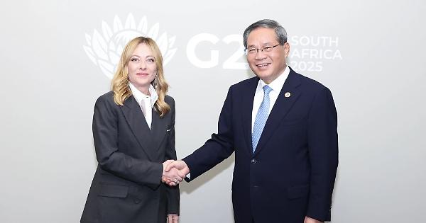 JOHANNESBURG (SUDAFRICA) (XINHUA/ITALPRESS) - Il premier cinese Li Qiang ha promesso sabato un accesso maggiore al mercato cinese per le aziende italiane attraverso esposizioni e altre piattaforme. La Cina incoraggia più aziende italiane a entrare nel mercato cinese tramite piattaforme come la China International Import Expo, la China International Fair for Trade in Services, la China International Consumer Products Expo e la China International Supply Chain Expo, ha dichiarato Li durante un incontro con la presidente del Consiglio italiana Giorgia Meloni a margine del 20esimo Vertice del G20. La Cina si aspetta inoltre che l'Italia offra un ambiente imprenditoriale equo, trasparente e non discriminatorio per le imprese cinesi che intendono investire in Italia, ha aggiunto Li. (ITALPRESS). -Foto Xinhua- mec/lcr/red 23-Nov-25 17:51