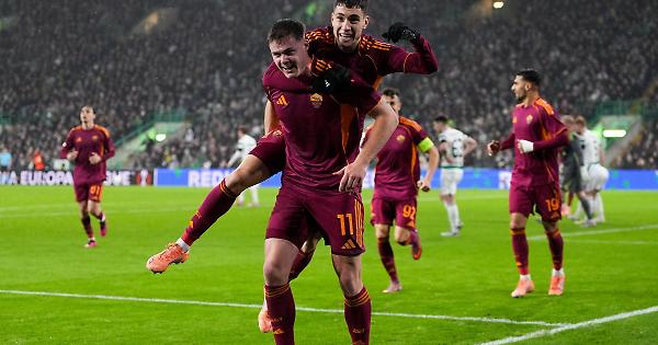 GLASGOW (SCOZIA) (ITALPRESS) - È una Roma brillante e convincente quella che domina in casa del Celtic e trova la terza vittoria consecutiva in Europa League: 0-3 il risultato a favore degli uomini di Gian Piero Gasperini, che si mettono alle spalle le due sconfitte di fila in campionato, salgono a 12 punti e provano a blindare i playoff, mantenendo viva la possibilità di chiudere tra le prime otto. Tanti i cambi di Gasperini rispetto alla sconfitta di Cagliari: Dybala parte dalla panchina, alle spalle di Ferguson ci sono Soulè, unica conferma là davanti, e la novità El Shaarawy, alla prima stagionale da titolare nella competizione. A centrocampo, poi, spazio a Pisilli e El Aynaoui in mezzo, con Cristante e Koné in panchina, mentre sulla fascia sinistra c'è Rensch. I giallorossi mettono da subito in campo tanta aggressività e una pressione molto alta, da dove scaturisce il primo angolo della partita. Batte Soulè e Scales, nel tentativo di anticipare Mancini, la insacca all'incrocio alle spalle di Schmeichel: è 0-1 al 6'. Al Celtic Park è monologo giallorosso, con le fasce che lavorano molto bene e El Shaarawy che si procura qualche occasione. Si vede anche Ferguson, che colpisce un palo al 27'. Il centravanti irlandese chiude i conti nel finale di primo tempo con una doppietta, al 36' finalizzando da pochi metri l'azione tra Soulè e Celik e al 46' con il diagonale vincente dopo un ottimo stop. Prima di rientrare negli spogliatoi c'è ancora tempo per un calcio di rigore a favore del Celtic, assegnato in maniera a dir poco generosa dal croato Kovacs per un contatto tra Hermoso e Engels. Quest'ultimo si presenta dal dischetto ma colpisce il palo. Nel secondo tempo, l'ingresso di Iheanacho dà nuova linfa alla squadra di casa: l'attaccante manca una grande occasione al 53' e poi trova la rete al 64', ma il gol viene annullato per la sua posizione di fuorigioco al momento del cross di Engels. Dieci minuti più tardi viene annullato un gran gol anche a Bailey, partito in fuorigioco a inizio azione. La Roma abbassa il ritmo ma va di nuovo vicina al gol con Schmeichel che para bene con i piedi su Bailey, innescato da Dybala, che poi tenta il tap-in ma viene chiuso da Scales. L'ultimo pericolo per la Roma arriva al 92' con Svilar che blocca a terra il tentativo di Balikwisha, ma il risultato non cambia più: i giallorossi tornano da Glasgow, dove avevano già vinto un mese fa contro i Rangers, con una grande iniezione di fiducia in vista dei prossimi impegni. - Foto Ipa Agency - (ITALPRESS). mec/ari/red 11-Dic-25 23:03