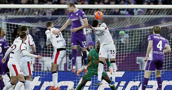 FIRENZE (ITALPRESS) - Il Milan riacciuffa la Fiorentina soltanto al 90°, beffa Kean e compagni che gustavano già il dolce sapore dei tre punti e consegna il titolo di campione d'inverno all'Inter. Al Franchi i rossoneri vanno vicino alla seconda sconfitta stagionale in campionato, mentre alla Fiorentina, come era già avvenuto mercoledì scorso contro la Lazio, rimane il rimpianto per un vantaggio non concretizzato e il pareggio incassato in extremis. Nkunku, entrato nel corso della ripresa, salva Allegri e i suoi dopo l'1-0 di Comuzzo al termine di un match equilibrato con i gigliati che hanno preso anche un palo con il nuovo acquisto Brescianini. Il copione del match è chiaro fin dal fischio di inizio con i padroni di casa che fanno la partita e gli ospiti, con Allegri che rinuncia contemporaneamente a Leao, Rabiot e Modric, ad agire di rimessa. La scelta per i rossoneri pagherebbe anche, se Pulisic non andasse incontro a uno dei suoi peggiori pomeriggi in termini di finalizzazione. Per due volte Fullkrug, al debutto da titolare, gli serve ottimi assist di sponda per presentarsi solo davanti a De Gea (17' e 22'), ma l'americano fallisce, così come fa anche in contropiede al 26'. La Fiorentina risponde con cross pericolosi di Gudmundsson e Gosens da sinistra non raccolti dai compagni di squadra. La gara non è nervosa ma ci pensa Massa, non in grande giornata, a renderla tale, prima ammonendo Kean all'ennesimo fallo subito non fischiato e poi espellendo Vanoli, per proteste, dopo un richiamo prolungato del direttore di gara su Gosens. Dopo un buon inizio di ripresa di marca viola, Allegri inserisce 3 cambi allo scoccare dell'ora di gioco fra cui Leao e Rabiot. Le sostituzioni, a cui aggiungere Fofana per Loftus Cheek al 65', arrivano un soffio prima del gol della Fiorentina realizzato da Comuzzo che anticipa di testa sia Bartesaghi che Pavlovic. Proprio quest'ultimo è l'uomo che lascia il campo per Nkunku a 15' dalla fine, con Bartesaghi arretrato in difesa. Il Milan assedia i 30 metri finali viola nella parte conclusiva della sfida, i brividi per i toscani arrivano in particolare su conclusione di Ricci da fuori area (88'), poco prima del pareggio di Nkunku al 90' che sfrutta al meglio una palla recuperata a centrocampo da Saelemekers su Fagioli. Prima del triplice fischio traversa di Bresciani, poi parata decisiva di Maignan su Kean. Finisce 1-1. - Foto Ipa Agency - (ITALPRESS). xb8/ari/red 11-Gen-26 17:24