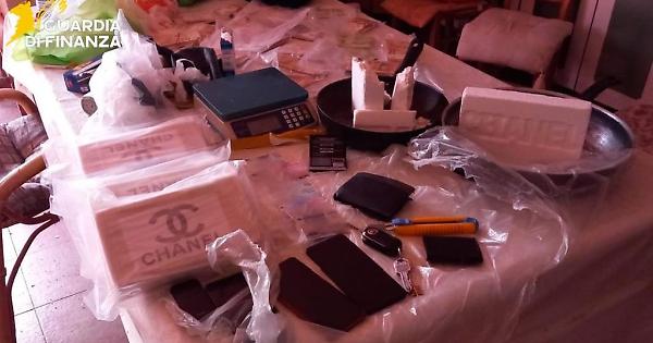 COSENZA (ITALPRESS) - La Guardia di Finanza di Cosenza ha individuato un casolare, nel comune di Cetraro, utilizzato per il taglio e il confezionamento di sostanza stupefacente. All'interno dell'immobile sono stati rinvenuti e sequestrati 5 panetti di cocaina pari a circa 5 Kg e mezzo e 750 grammi di marijuana e attrezzatura varia per il taglio, la pesatura e il confezionamento, unitamente a banconote pari a oltre 100 mila euro accuratamente suddivise in più "mazzette" impacchettate in buste sottovuoto. Inoltre, adiacente l'immobile è stata rinvenuta e sequestrata un'autovettura con doppio-fondo per il trasporto occulto dello stupefacente. Secondo le prime stime, il valore della cocaina, che avrebbe consentito il confezionamento di un ingente numero di dosi destinate al mercato locale e nazionale, ammonta ad oltre un milione di euro. Le indagini hanno consentito l'identificazione e l'arresto in flagranza di reato di cinque persone. L'attività, che ha inferto un duro colpo alle organizzazioni criminali locali, s'inserisce in una più ampia ed articolata strategia della Guardia di Finanza, mirata al contrasto del traffico di sostanze stupefacenti, a tutela della salute pubblica. - Foto: ufficio stampa Guardia di Finanza - (ITALPRESS). pc/com 19-Gen-26 08:13