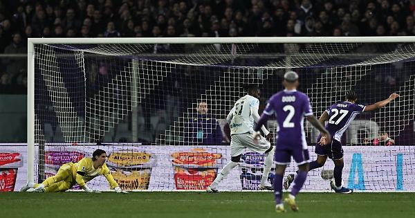 FIRENZE (ITALPRESS) - La capolista la sblocca subito, la Fiorentina non molla, si rialza e pareggia. Finisce 1-1 la sfida del Franchi, aperta da Francesco Pio Esposito e chiusa da Ndour: un pareggio che fa felice il Milan che, a otto giornate dalla fine del campionato, torna a -6 dall'Inter e per almeno due settimane potrà tornare a coltivare i propri sogni scudetto. E' un punto guadagnato nella corsa salvezza per De Gea e compagni, mentre è l'ennesima occasione persa per l'Inter che, per la terza gara di fila, non trova la vittoria. Neanche il tempo di registrare il modo di giocare delle due squadre che gli ospiti passano in vantaggio. Bastano 41 secondi a Pio Esposito per raccogliere di testa un cross da destra di Barella e sorprendere tutta la difesa di casa. La Fiorentina passa i primi 15' quasi sotto shock, facendosi dominare a centrocampo dai nerazzurri che ritrovano i piedi eleganti e la sapienza di Calhanoglu. Non è un caso che l'Inter si veda prima annullare il raddoppio per fuorigioco di Barella e che ancora Pio Esposito sfiori la doppietta personale al 19' su suggerimento di Dumfries. Piano piano i gigliati escono dal guscio, anche perché sale la qualità di Fagioli, ma i toscani pagano la serata da polveri bagnate di Kean che, in particolare al 29', a mezzo metro dalla porta fallisce il tap-in vince su cross di Brescianini servito da Parisi. Sempre Kean già al 6' aveva sbagliato sotto porta su assist di Gosens, mentre è da registrare anche un colpo di testa di Gudmundsson fuori di poco al 21'. Il secondo tempo è una battaglia di nervi, con gioco molto spezzettato e poche occasioni da rete almeno nella prima parte, con Acerbi che rileva Carlos Augusto dopo l'intervallo, ma con Kolarov (in panchina al posto dello squalificato Chivu) che ci pensa molto prima di cambiare qualcosa. Lo fa al 68' quando inserisce Frattesi e Bonny per Calhanoglu e Thuram, quest'ultimo all'ennesima prova incolore della sua stagione. Una conclusione di Ndour al 71' saggia i riflessi di Sommer. Proprio Ndour si rifà 5' più tardi quando raccoglie una corta respinta di Sommer su conclusione di Gudmundsson, dopo errore di Barella, firmando la rete dell'1-1. Nel finale le chance per trovare il successo sono più della Fiorentina che dell'Inter, con Gudmundsson prima ed Harrison poi, anche se serve un riflesso di De Gea a tempo ormai scaduto su Pio Esposito per salvare il risultato. Alla fine a fare festa sono solo i tifosi viola. - Foto Image - (ITALPRESS). xb8/ari/red 22-Mar-26 23:00