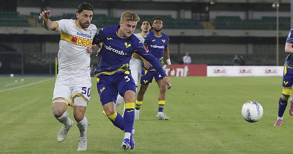 VERONA (ITALPRESS) - Pareggio senza gol tra Verona e Lecce, sfida di bassa classifica tra due squadre che giocano sull'equilibrio precario di situazioni diverse, ma entrambe complicate. Per i veneti retrocessione di fatto solo rimandata, per i salentini un punto che muove la classifica e che permette alla squadra di mister Di Francesco di guadagnare un punto sulla Cremonese e di lasciare, a 4 giornate dalla fine del campionato, il terzultimo posto che vale la B. La prima occasione della gara ce l'ha il Verona, con il lancio lungo di Bernede per Belghali che dentro l'area serve a rimorchio Akpa Akpro, rapido nella conclusione che Falcone è reattivo a respingere. Buon approccio del Verona che gestisce la sua presenza nella metà campo del Lecce con un giro palla avvolgente, ma privo di sbocchi. L'equilibrio permane per tutto il primo tempo, senza particolari lampi da una parte e dall'altra. Nella ripresa è ancora il Verona a crearsi maggiore spazio in avanti, con Suslov che sulla trequarti salentina libera il sinistro rasoterra parato in tuffo da Falcone. Il Lecce manca di incisività e Di Francesco prova così a scuotere i suoi, inserendo Ngom e Cheddira. È proprio l'attaccante marocchino ad avere la palla del vantaggio, al 73', sull'iniziativa di Banda che scappa sulla corsia di sinistra e mette il cross per Cheddira, che di piatto non inquadra la porta. Alza il ritmo il Lecce, con Banda che un minuto più tardi spaventa ancora Montipò con un tiro cross che il portiere scaligero alza in corner. Finale in cui entrambe le strade provano a ribaltare il fronte, con il Verona che nel recupero troverebbe la rete del vantaggio: punizione dalla trequarti di Lovric e colpo di testa di Edmundsson che termina in rete, salvo poi essere annullato dopo il check al Var di Massa per fallo dello stesso Edmundsson su Falcone. Si chiude così la gara, con la matematica che non condanna ancora il Verona alla retrocessione, mentre il Lecce conquista un punto che lo tiene appena fuori dalla zona rossa della classifica. - Foto Ipa Agency - (ITALPRESS). xi6/ari/red 25-Apr-26 22:57
