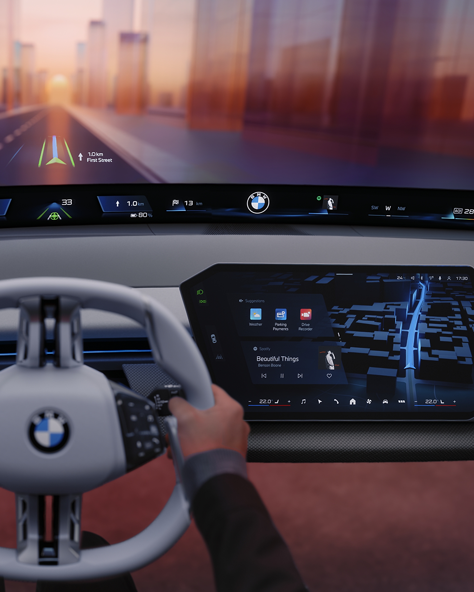 La Bmw, al recente Ces di Las Vegas, ha tirato fuori dalla manica, uno dei suoi ultimi assi: il nuovo IDrive, completo di Panoramic Vision. Un nuovo “Concept di visualizzazione”, basato sull’ultima evoluzione del Bmw Operating System X, progettato per agevolare la vita del guidatore a bordo, offrendo una vastissima gamma di personalizzazioni e l’accesso da un’infinità di app digitali, come il servizio di videoconferenze Zoom. “Questo avanzamento tecnologico – ha detto Frank Weber, membro del consiglio di amministrazione di Bmw AG e responsabile dello sviluppo - offre uno dei migliori e più completi sistemi di infotainment del mondo, fissando ancora una volta lo standard del settore nell'interazione multimodale e sarà disponibile partire dal primo modello di serie Neue Klasse, previsto per la fine di quest'anno, il nuovo BMW Panoramic iDrive diventerà parte integrante di tutti i futuri modelli BMW”. Il nuovo sistema operativo “X” è un ulteriore evoluzione dei sistemi più recenti, montati sulle auto del marchio tedesco ed è interamente sviluppato in casa, per offrire un approccio ancora più intuitivo. La base è sempre quella della piattaforma Android Open Source Project (AOSP). Ovviamente, cresce l'intelligenza del dispositivo, ora in grado di combinare, lutilizzo di: Panoramic Vision, BMW 3D Head-Up Display, il display centrale e il volante multifunzione. Non manca certo un “Intelligent Personal Assistant”, in grado, se attivato, di dare suggerimenti e consigli vari, su stile di guida e sistemi Adas poco utilizzati.