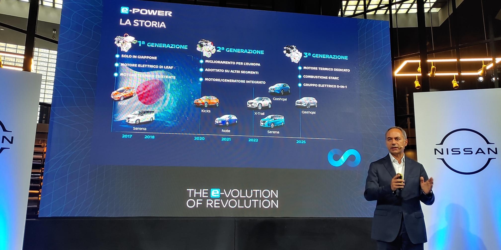 Abbiamo provato la seconda generazione di “e-Power” in giro per Milano, ma prima di scendere nel dettaglio, qualche riflessione è d’obbligo. Innanzitutto, stiamo assistendo ad un nuovo capitolo della “Querelle” sulle emissioni in Europa, perché la Von Der Leyen (presidente Commissione) ha rimescolato le carte, a nostro avviso in maniera ancora criptica, affermando di voler prendere in considerazione l’utilizzo di biocarburanti ed e-fuel. Resta, però, invariato il principio di “Neutralità tecnologica”. Insomma, non si capisce ancora bene se si riuscirà ad allungare la vita a questi benedetti termici, oppure se il termine del 2035 resta perentorio. Comunque, uno dei passi più diretti verso l’elettrificazione, è indubbiamente il sistema Nissan e-Power, un’architettura tecnica tanto semplice, quanto geniale ed efficace. In sostanza, siamo di fronte ad un motore termico, che funge solo da generatore, per alimentare un elettrico che spinge l’auto. Ribadiamo, il termico non dà mai trazione alle ruote. I vantaggi sono molteplici, perché il motore termico gira quasi sempre a regime costante, senza picchi eccessivi, quindi contiene fortemente i consumi e mantiene la sua temperatura costante, il che si traduce in un funzionamento ottimale del catalizzatore che, ricordiamo di nuovo, per operare a dovere, deve essere sempre a temperatura. Il sistema e-Power è operativo da una decina d’anni, anche se, qui da noi, gira solo da tre anni ed ora è stato rivisto, siamo alla terza generazione e nel mondo, in totale, ne sono stati venduti 1.62 milioni e va ad equipaggiare la Qashqai (non anche la X-Trail).