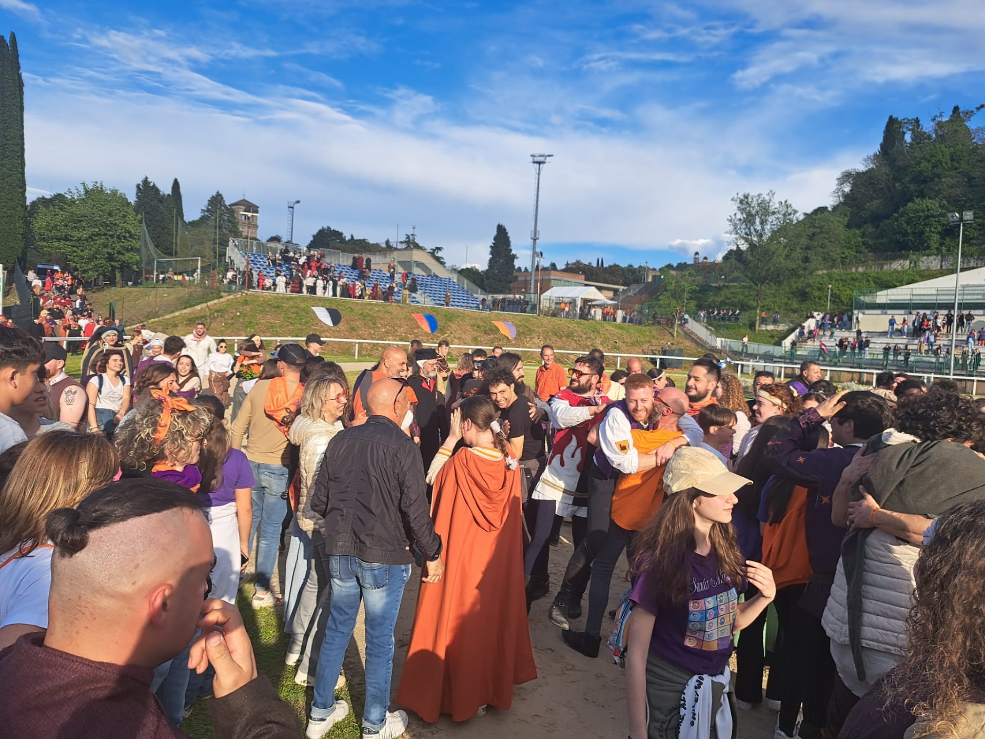 A Narni il terziere arancio-viola di Santa Maria ha vinto, domenica 11 maggio, la 57esima edizione della Corsa all'Anello. Grande festa al campo de li giochi dopo il verdetto finale.
