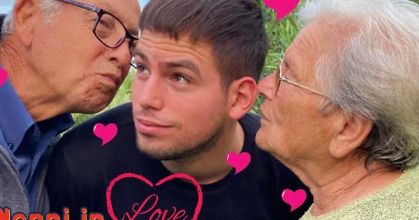Il giovane influencer Thomas Rossini insieme ai nonni Lamberto e Vera