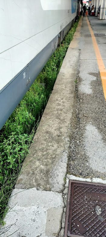 Nel frattempo oltre ai papaveri potrebbero spuntare anche i girasoli (i semi volano con gli uccelli) che fanno molto Umbria verde (e Van Gogh), mentre la pianta di fico, in rigogliosa crescita accanto al marciapiedi del binario due, è stata divelta giorni fa, probabilmente da un Intercity in transito. Così impara a superare la linea gialla.