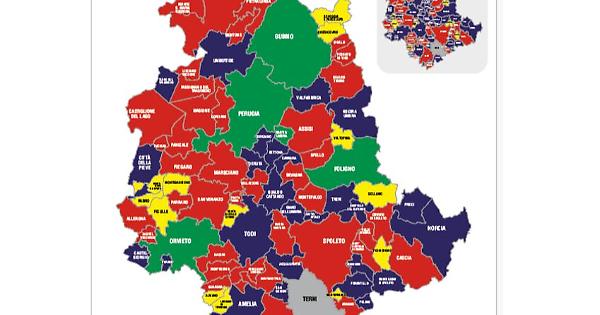 Com'è cambiata la geografica politica dell'Umbria dopo le elezioni nei sessanta comuni per il rinnovo di sindaci e consigli comunali? Gli elettori di alcuni municipi hanno votato per la continuità, altri per cambiare linea di amministratori. In cinque occorrerà attendere i ballottaggi per conoscere l'esito. Assegnando il rosso ai comuni guidati dal centrosinistra, il blu a quelli di centrodestra, il giallo ai territori governati dalle civiche pure e il grigio a Terni dove a guidare sono i popolari, la regione ha l'aspetto di un Arlecchino politico. Non c'è, infatti, una linea politica che si impone con forza. Sarà il secondo turno delle amministrative a sbilanciare la regione verso il centrodestra o il centrosinistra. Oppure, magari, a lasciarla ancora in equilibrio. (CORRIERE DELL'UMBRIA)