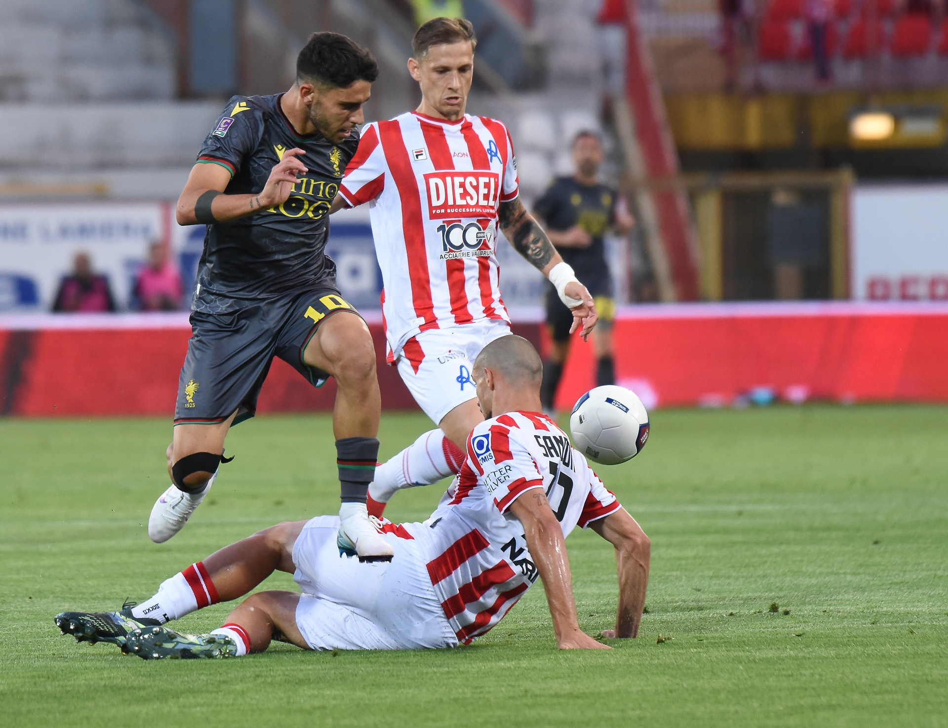 L.R. VICENZA (3-5-2): Confente; Cuomo, Leverbe, Sandon; Talarico (35′ st Rossi), Della Latta (22′ st Rauti), Ronaldo (22′ st Carraro), Zonta (45′ st Beghetto), Costa; Della Morte (35′ st De Col), Morra. A disp.: Massolo, Gallo, Capone, Garnero, Laezza, Fantoni.All. Vecchi