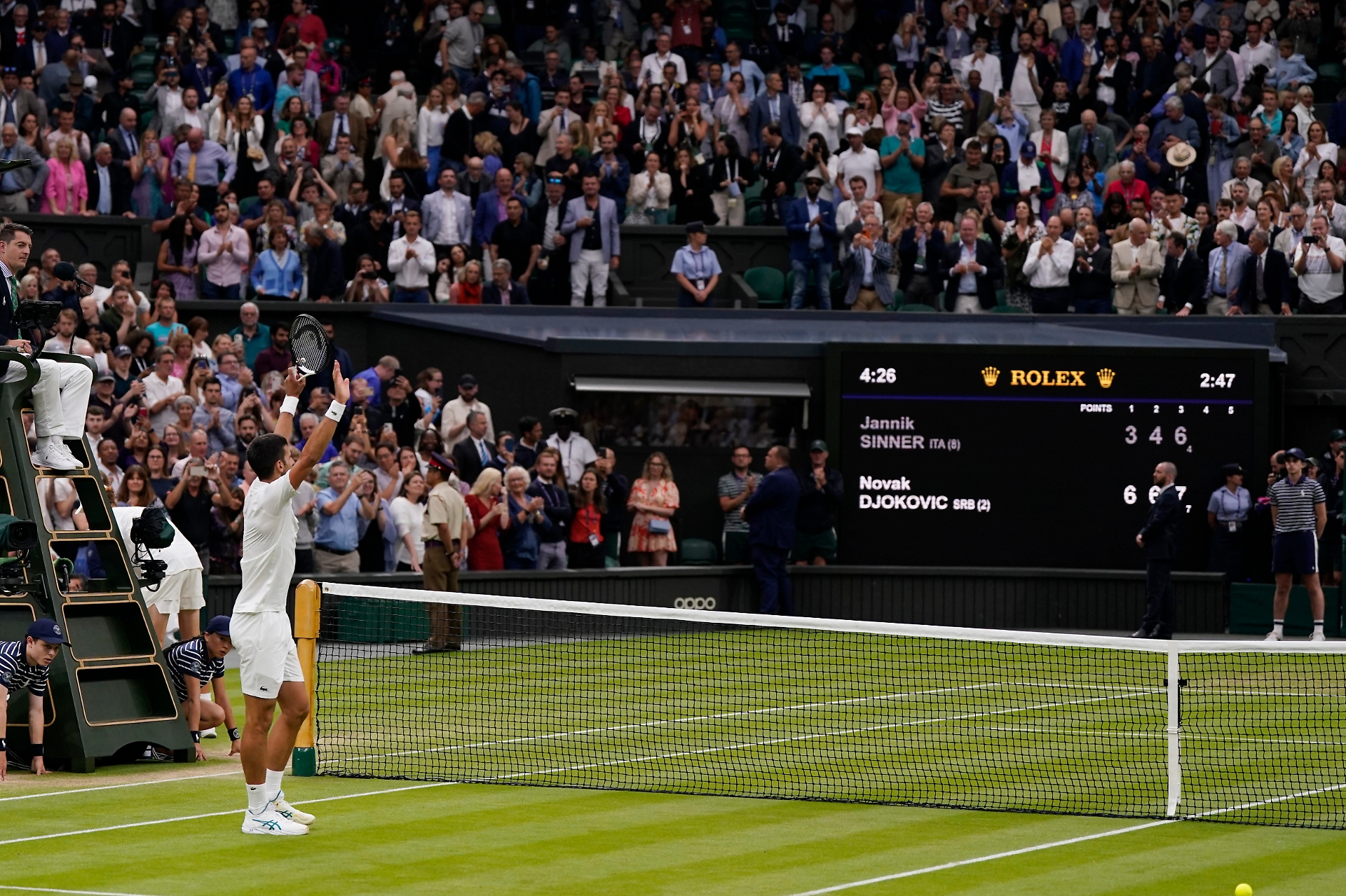 Terzo incontro tra i due, secondo in uno Slam: Wimbledon è ancora teatro di confronto tra Sinner e Djokovic. Nella semifinale del 2023, il match ha offerto meno spettacolo rispetto alla battaglia in cinque set dell'anno precedente, con Djokovic, autore di una prestazione dominante, che supera l'altoatesino in tre set (6-3, 6-4, 7-6).