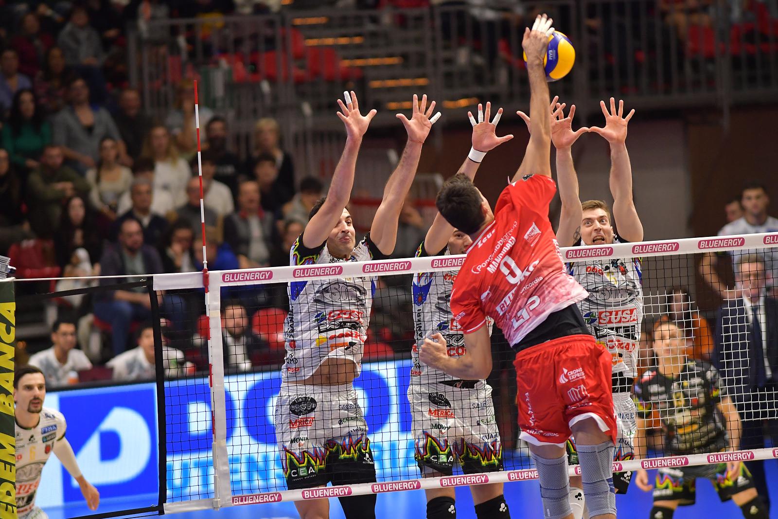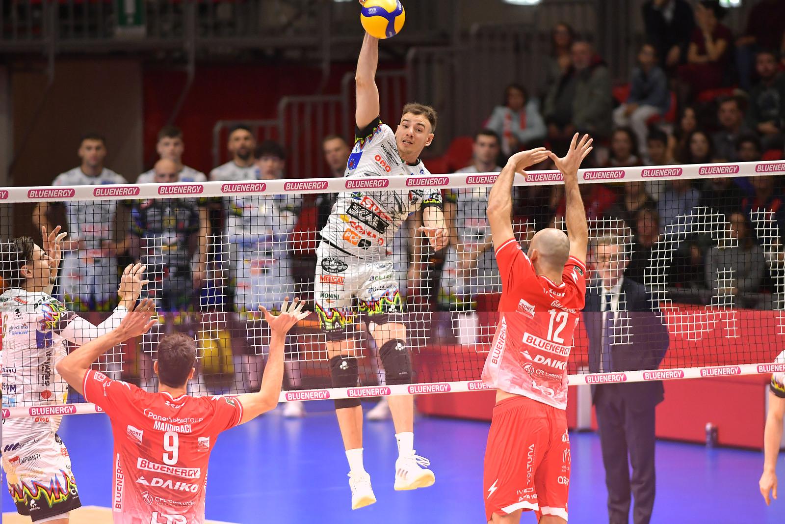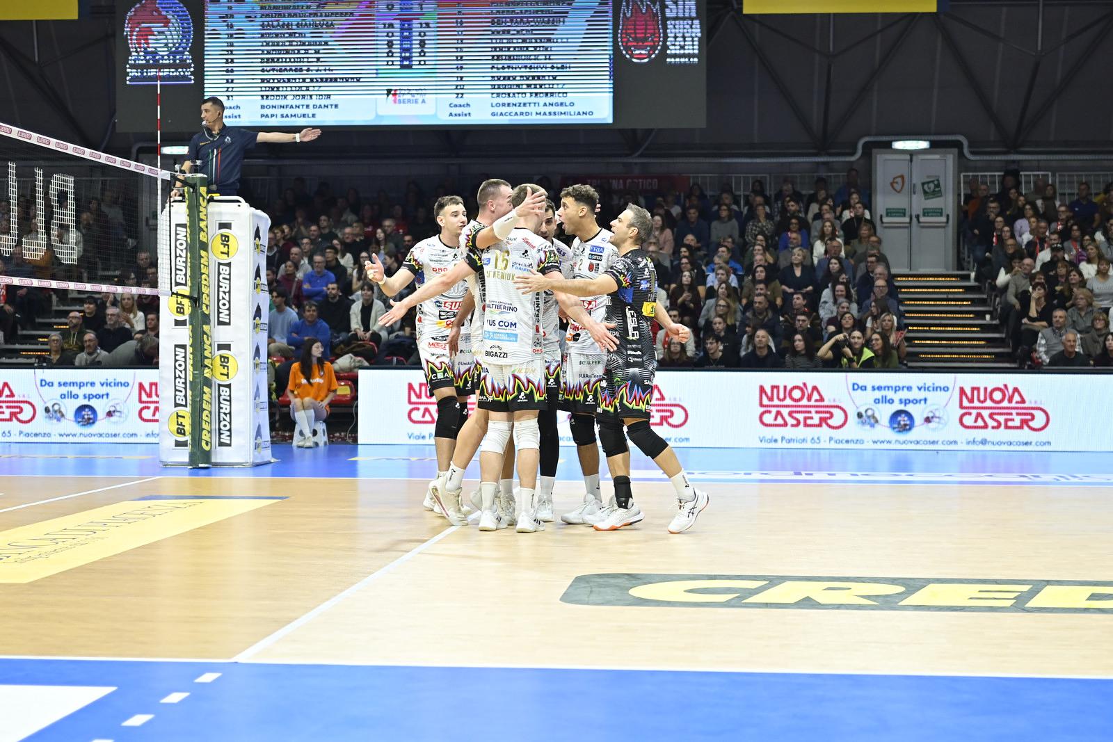La Sir Susa Scai Perugia rimonta una partita complicata contro la Gas Sales Bluenergy. Sotto di due set a Piacenza, i Block Devils la ribaltano e la chiudono al tie-break. I bianconeri sono ora in vetta alla classifica, a quota 14 punti, insieme alla Lube. Ma al contrario dei cucinieri, la Sir ancora non ha perso una partita. Lorenzetti non sorprende nella formazione iniziale, con Plotnytskyi e Semeniuk schiacciatori e la coppia di centrali composta da Russo e Loser. L’opposto è Ben Tara, completano lo Starting Six capitan Giannelli e il libero Colaci.