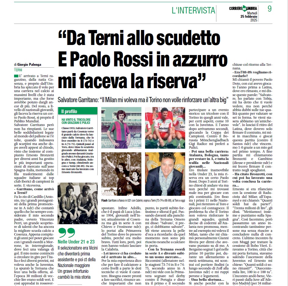 Un grave lutto ha colpito il mondo della Ternana Calcio nell'anno del suo centenario. Come riportato per primo dal "quotidiano del sud" si è spento nella sua Cosenza Salvatore Garritano, uno dei più fulgidi prodotti del vivaio rossoverde degli anni 70, lo stesso che seppe lanciare anche un campione del mondo come Franco Selvaggi.