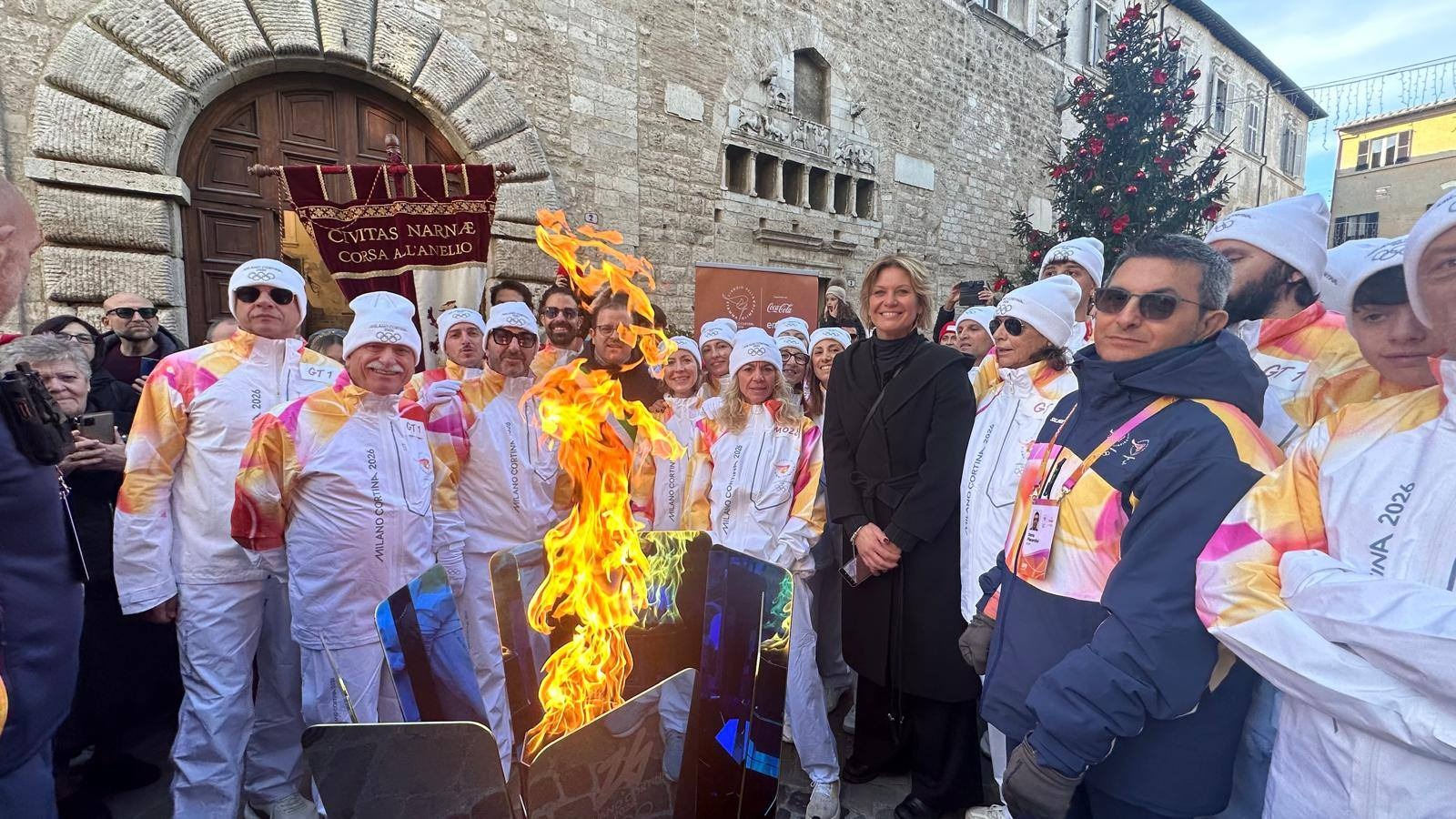Grande partecipazione ed emozione per il passaggio a Terni della fiaccola che preannuncia lo svolgimento delle Olimpiadi invernali di Milano e Cortina 2026.