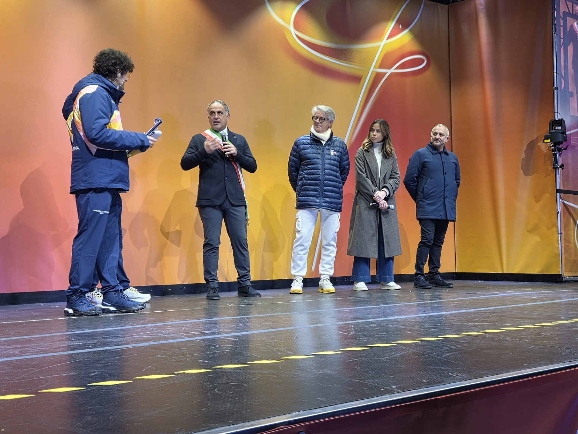 Samanta Togni e Danilo Petrucci sul palco di piazza Tacito vicino al braciere olimpico