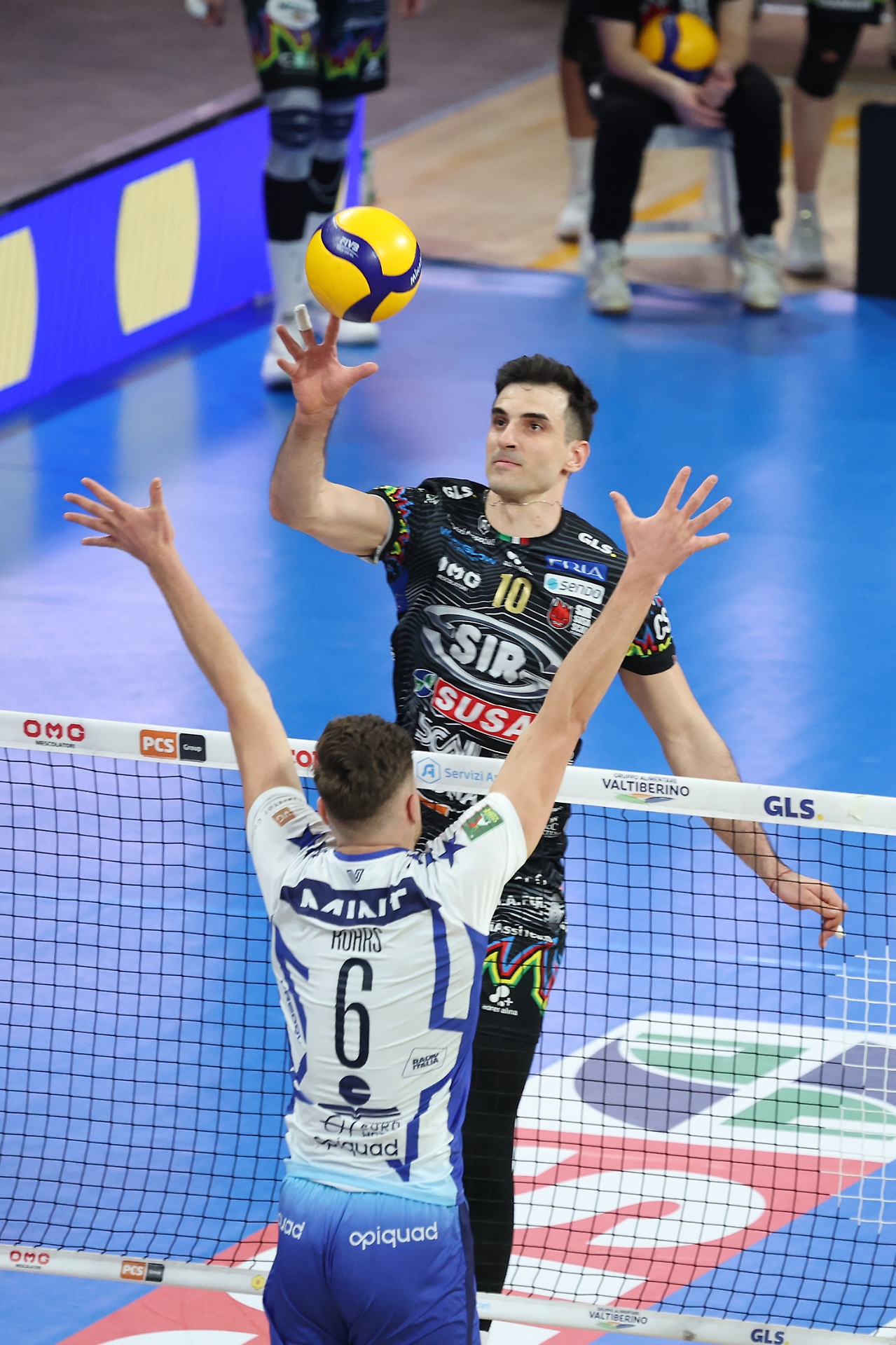 QUARTO SET La Sir prova immediatamente a mettere la freccia con Giannelli, il quale con un ace firma il 4-2. Da lì, Perugia continua a spingere sull’acceleratore e poco dopo riesce a mettere a referto con Semeniuk il momentaneo 8-4. Block Devils che nella seconda parte del set continuano a fare la voce grossa e con il punto messo a terra da Plotnytskyi riescono a firmare il 14-7 e costringono coach Eccheli a chiamare il timeout. Al rientro in campo, la situazione non cambia e la Sir continua a controllare nel migliore dei modi il proprio cospicuo vantaggio e tocca con Plotnytskyi anche il massimo vantaggio sul 17-10. Si chiude così la sfida, con la Sir Susa Scai Perugia che si impone per 3-1 vincendo anche il quarto periodo per 25-17, con il punto finale di Giannelli, e si porta avanti nella serie dei quarti di finale sull’1-0.