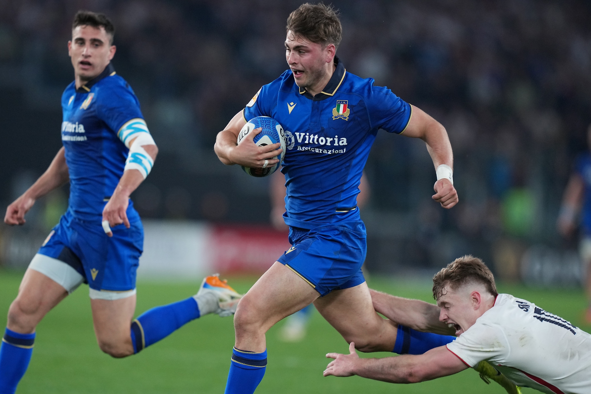 All’Olimpico non si è vista una squadra rassegnata a difendere con orgoglio e perdere con onore. Si è vista una squadra affamata. Giovane e forte. Placcaggi feroci, mischie che non arretrano, calci che pesano come macigni sul tabellone. E soprattutto una cosa che per troppo tempo era mancata contro i bianchi della Rosa: la convinzione. Quella che ha inculcato il ct argentino Quesada. Quando l’Inghilterra ha provato a fare l’Inghilterra — pressione, possesso, arroganza tecnica — l’Italia non si è sciolta. Ha stretto i denti. Ha risposto colpo su colpo. E quando la partita ha iniziato a oscillare sul filo della tensione, la meta — quella parola che nel rugby vale più di mille retoriche — ha finalmente deciso di sorridere agli azzurri.
