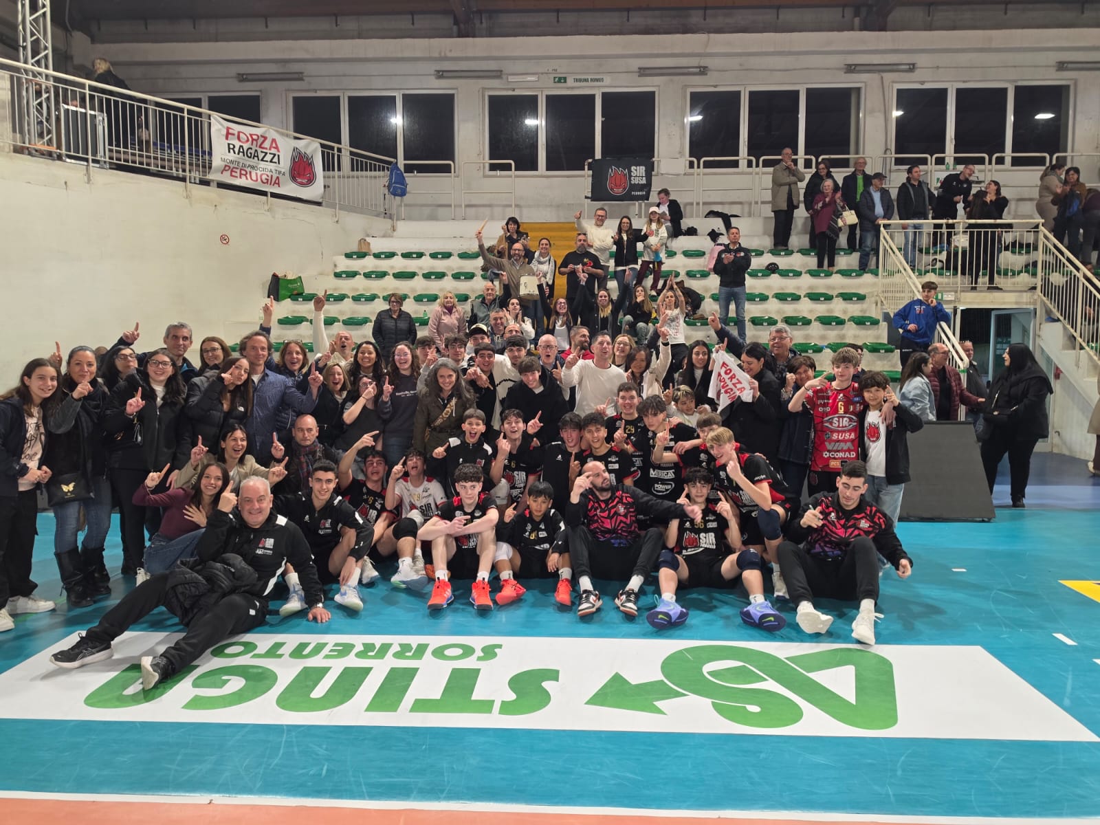 Il club di Perugia, in una nota “ringrazia la società Romeo Sorrento per l’ospitalità e verso le società Asd Monte Volley, Apd Monteluce e Pallavolo Chieti 1996 per aver permesso ai loro tesserati, rispettivamente il centrale Pasquale Iovine, il palleggiatore Francesco Cancellotti e lo schiacciatore Graziano D’Agostino di partecipare come prestiti con la formazione della Sir Susa Scai Perugia”.