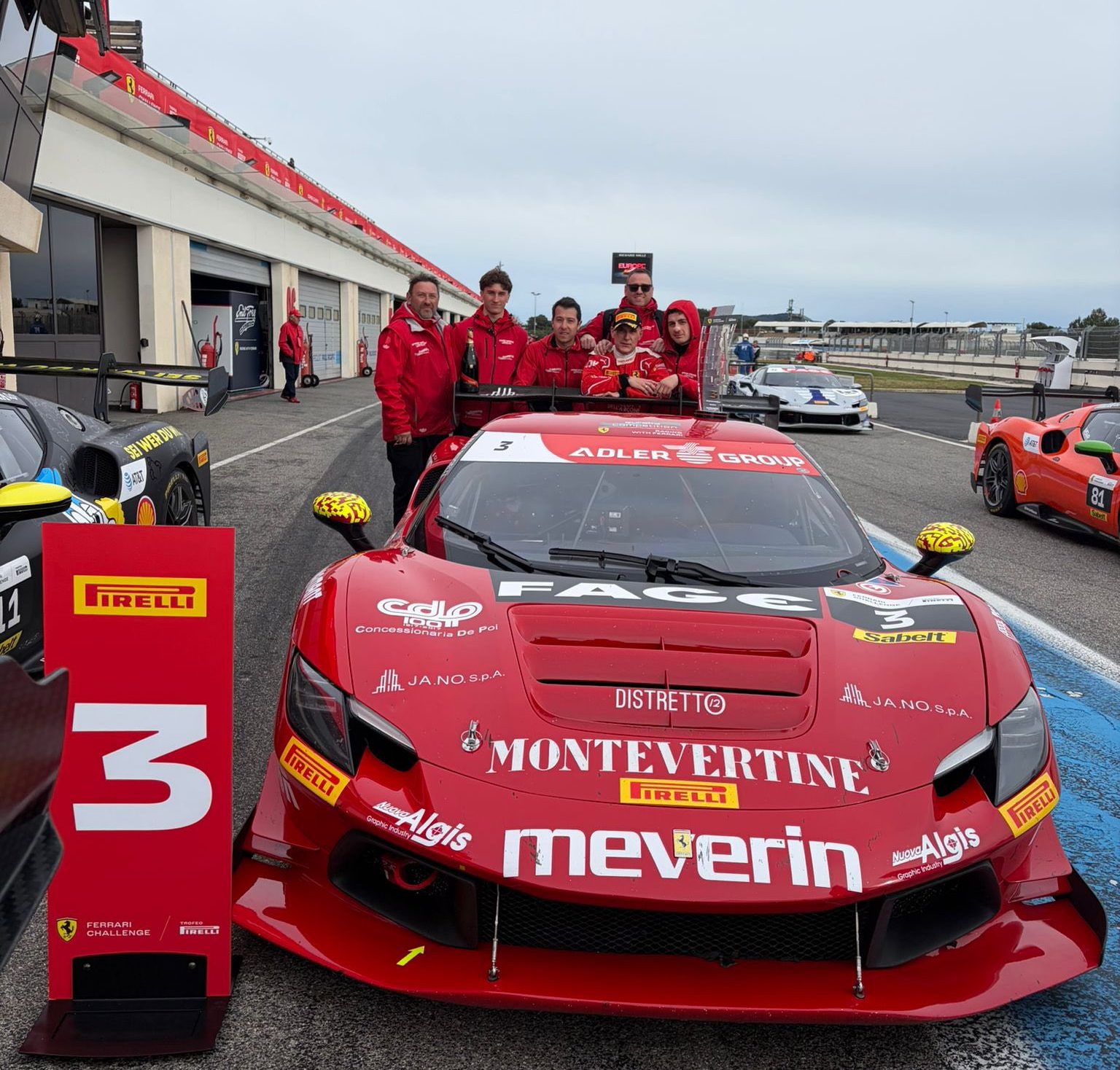 Presenza costante nel Ferrari Challenge è rappresentata dal team perugino CDP – Eureka Competition, curato dalla concessionaria di Ellera di Corciano della Casa di Maranello, sotto la guida di Angelo De Poi. La squadra umbra ha confermato l’esperto pilota Max Mugelli, iscritto al Trofeo Pirelli. Mugelli è un veterano della serie, in cui ha debuttato nel 2000, disputando 10 stagioni. In Francia il pilota di Ronta ha iniziato la stagione piazzandosi nella qualifica per gara-1 al settimo posto. Il sabato il driver della CDP ha disputato una corsa regolare: slittato all’inizio in ottava casella, è poi risalito sino alla sesta piazza assoluta (terzo nel Trofeo Pirelli), a 42” dal vincitore, lo spagnolo Sergio Paulet.