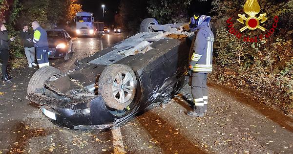 A Terni un'auto, nel corso della notte di mercoledì 20 novembre, si è ribaltata in via tre Venezie, a Borgo Bovio. Illeso l'autista che viaggiava da solo ed è uscito autonomamente dalla vettura.